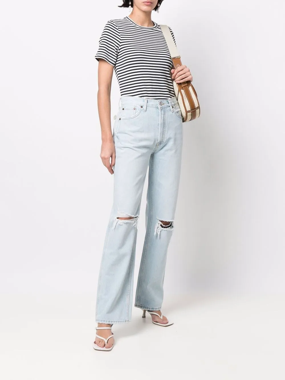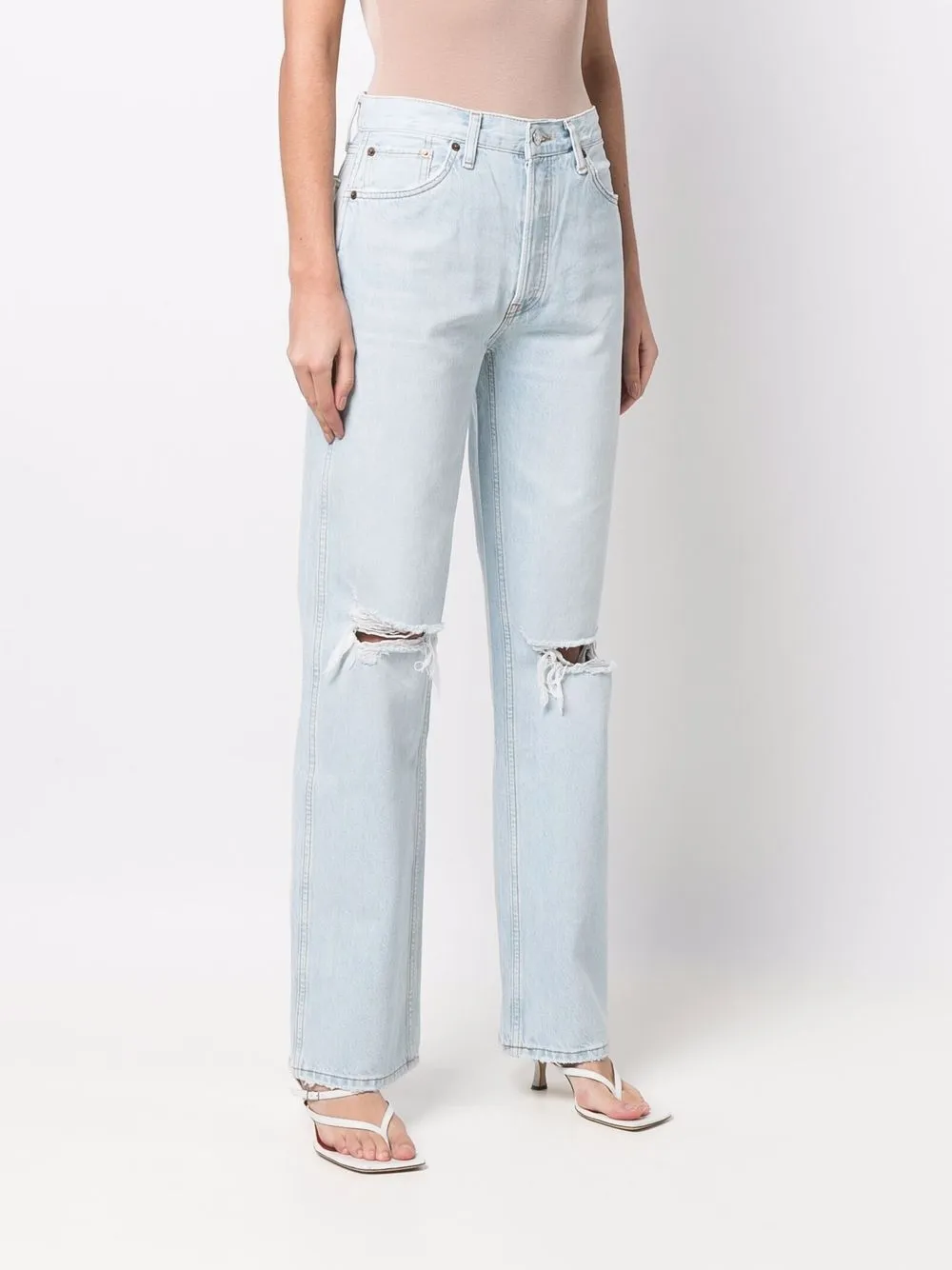 Широкие джинсы с эффектом потертости RE/DONE, синий