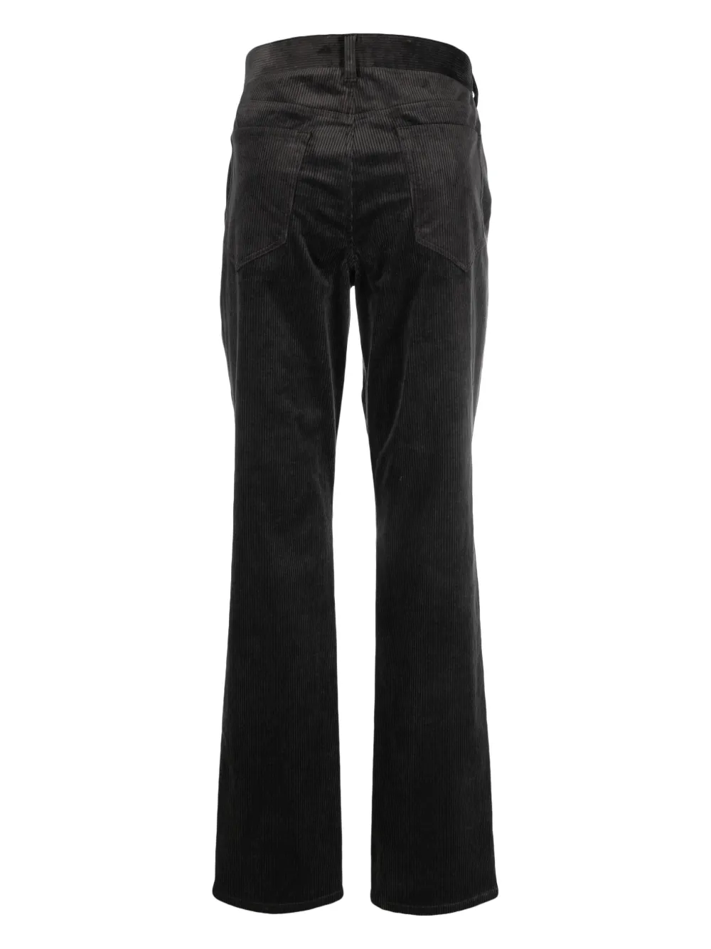 Антрацитово-серый, эластичный хлопок, вельветовый материал, петли для ремня, прямой крой, потайная застежка на молнии и пуговицах и пять карманов.