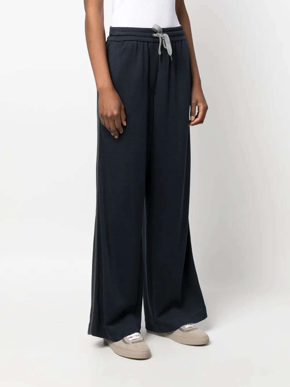 Брюки широкого кроя с декором Monili Brunello Cucinelli, синий