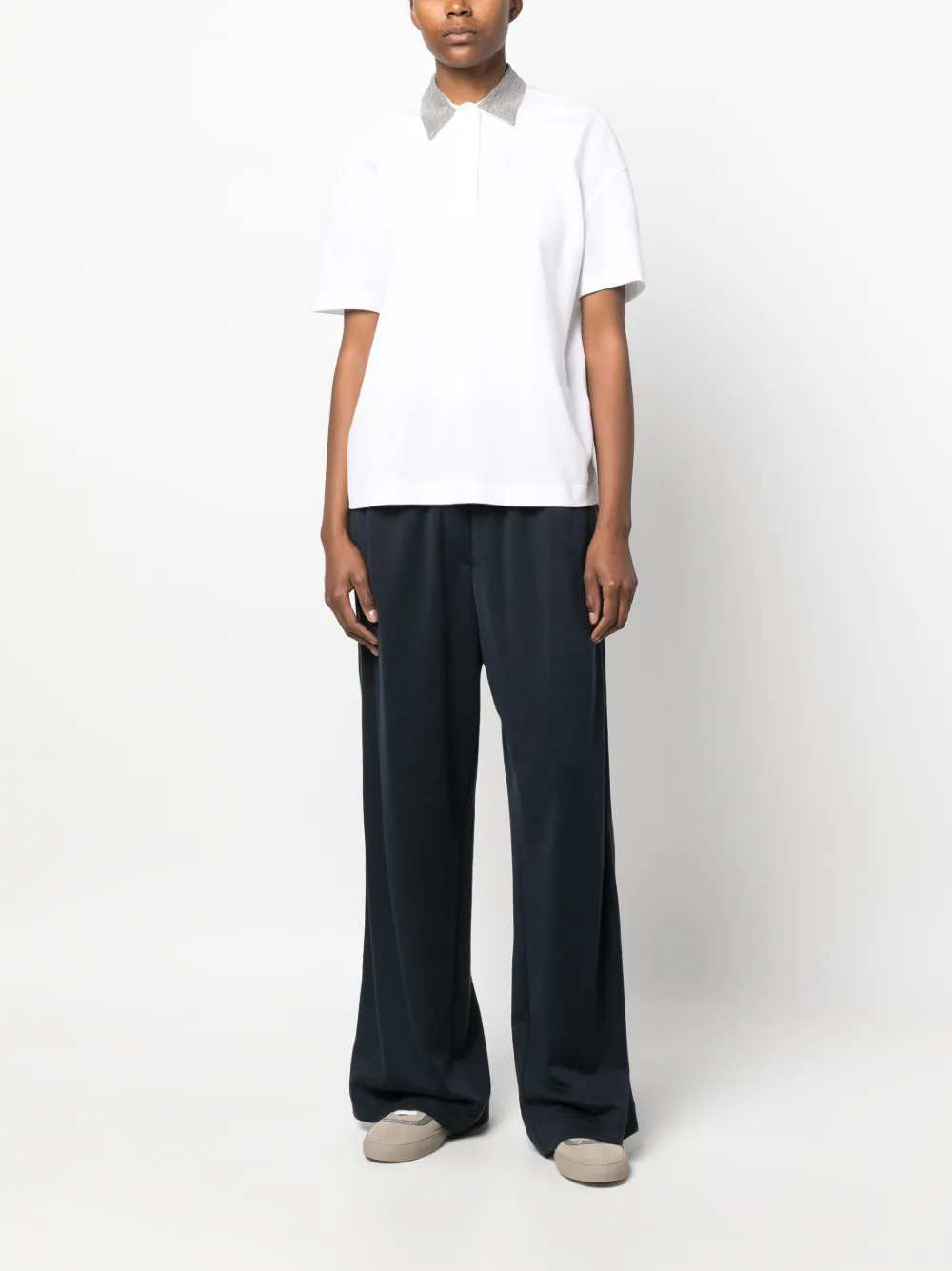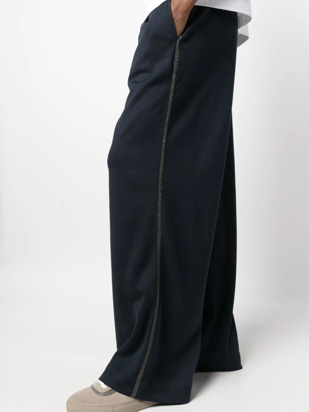 Брюки широкого кроя с декором Monili Brunello Cucinelli, синий 171 883₽