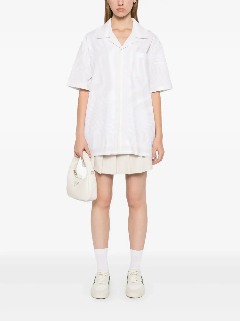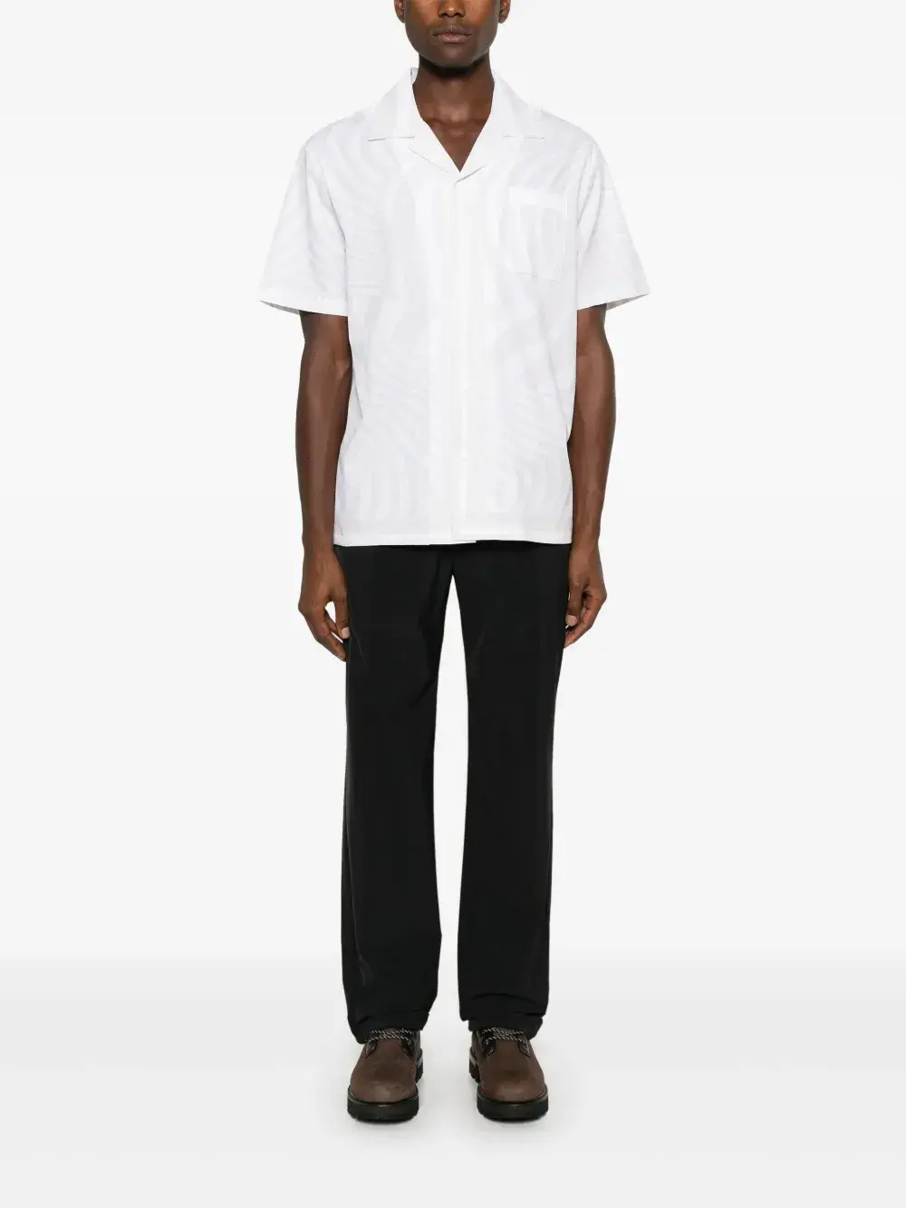 Подробнее о товаре: • белый/песочно-бежевый • High Vent • монограмма • без эффекта утяжеления • застежка на кнопках спереди • отложный воротник • короткие рукава • принт с логотипом на груди • нагрудный накладной карман • разрезы по бокам • модель без подкладки • асимметричный подол • Это унисекс-модель. Обратите внимание, что для нее используется мужская размерная сетка.