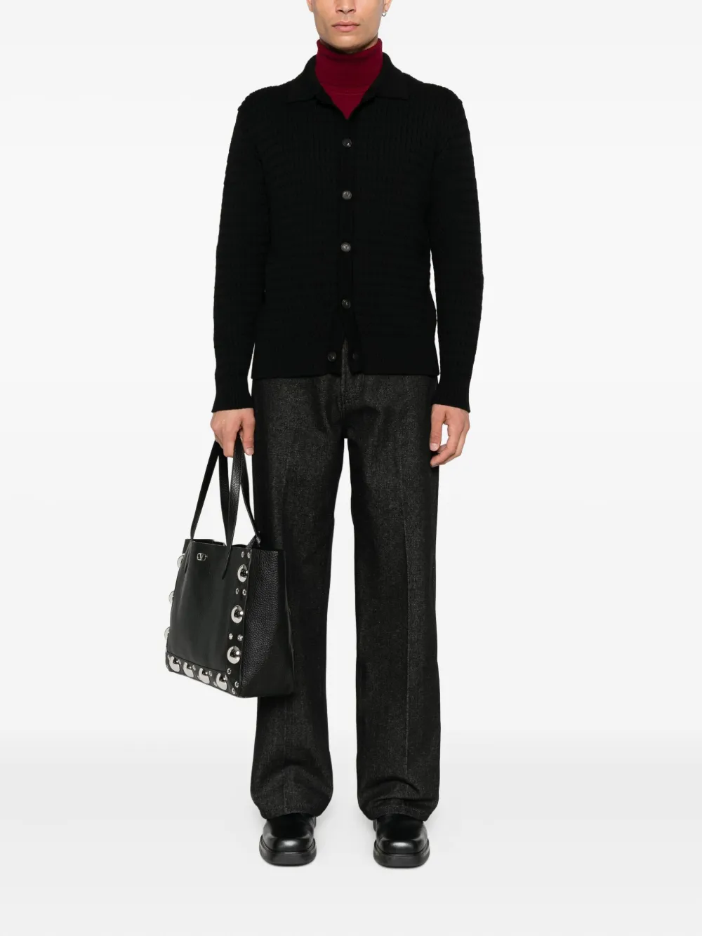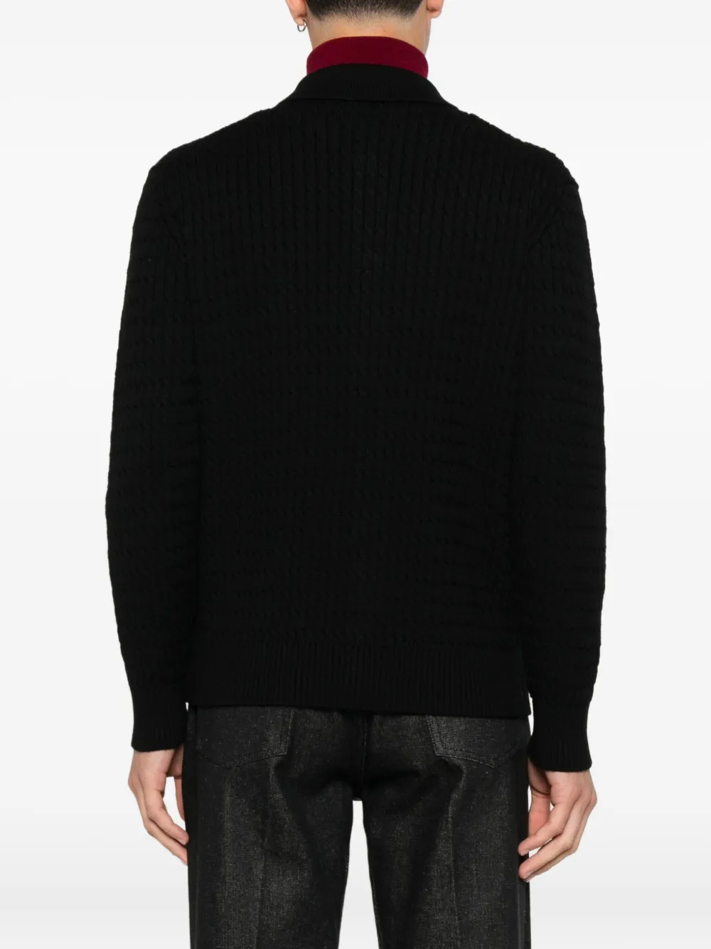Черная застежка на пуговицы спереди, длинный рукав, трикотажная косичка, воротник-поло