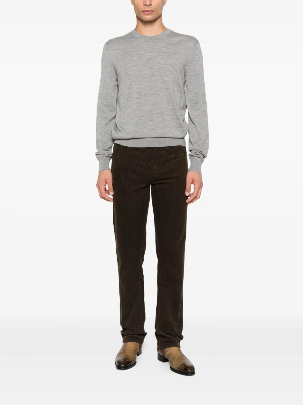 Шерстяной свитер с круглым вырезом TOM FORD, серый