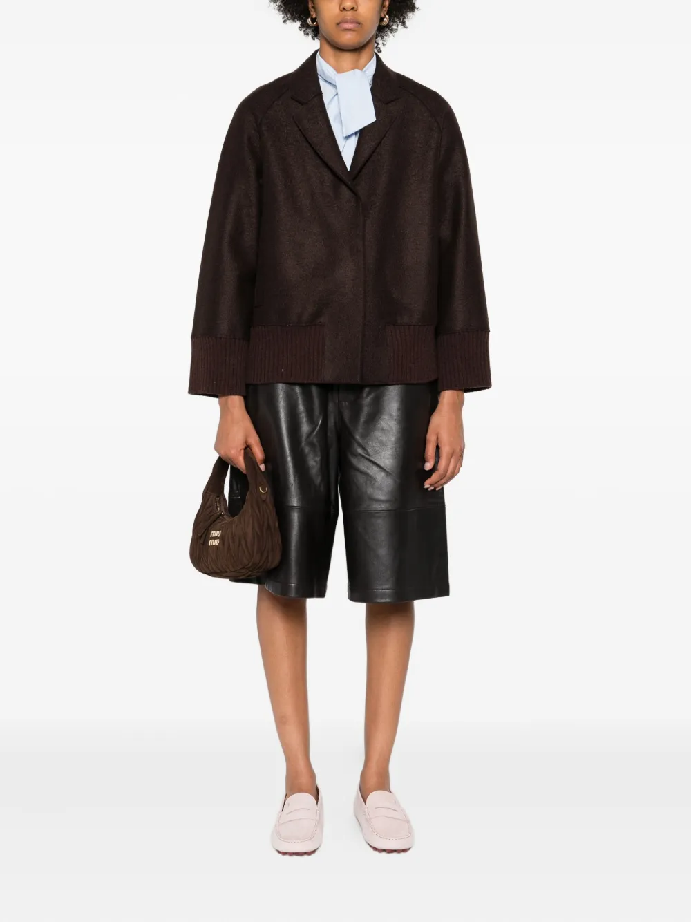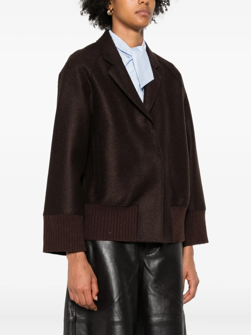 Шерстяной жакет с манжетами в рубчик Rosso 35, коричневый