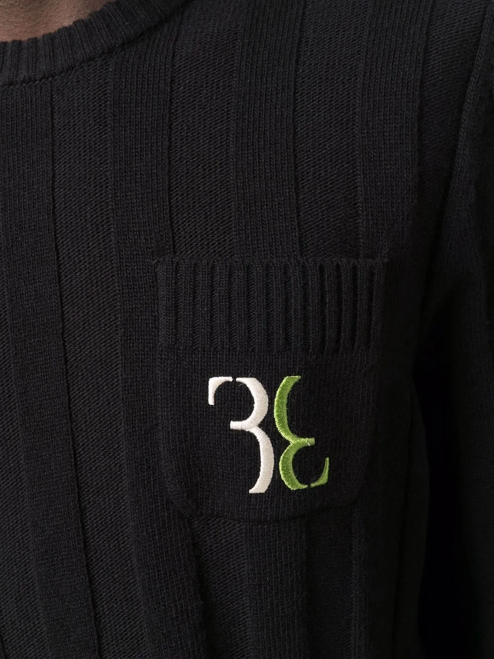 Вышитый логотип на груди, узор в вертикальную полоску, детали в рубчик, нашивка с логотипом сзади, круглый вырез, длинные рукава, нагрудный накладной карман и прямой подол. Цвет: черный.