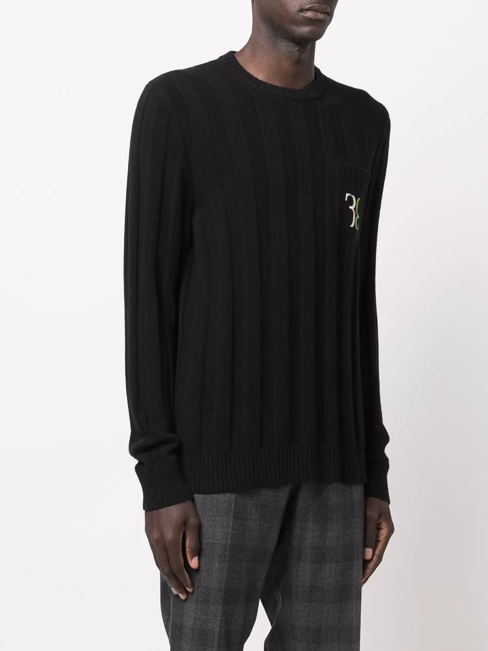 Шерстяной джемпер с вышитым логотипом Billionaire, черный