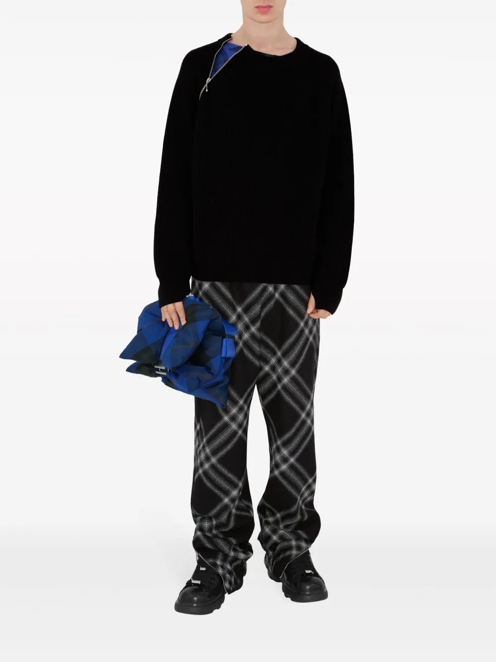 Шерстяной джемпер с молнией BURBERRY, черный 88 537₽