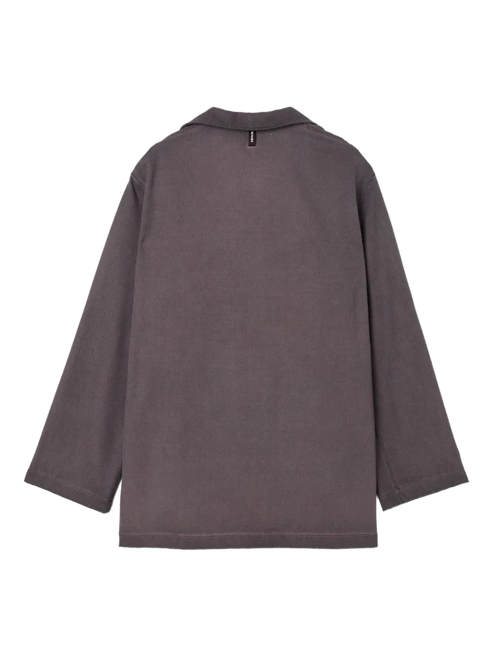 Коричневая шерсть, длинные рукава, асимметричный подол, острый воротник.