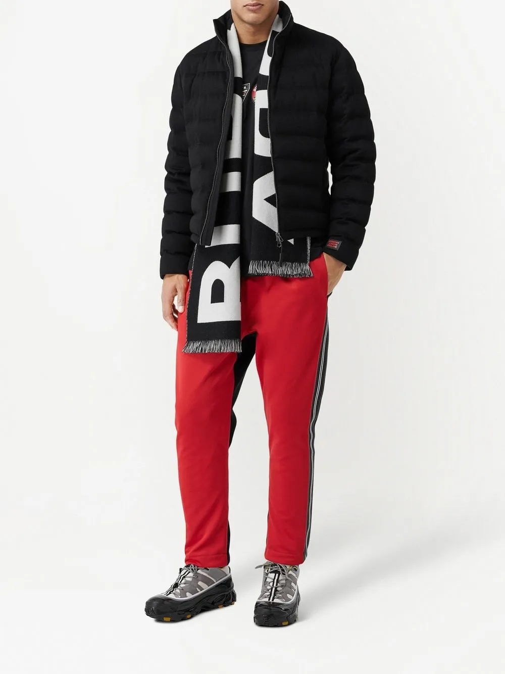 Черный/белый, шерсть, жаккардовый логотип, прямоугольная форма и края с бахромой.