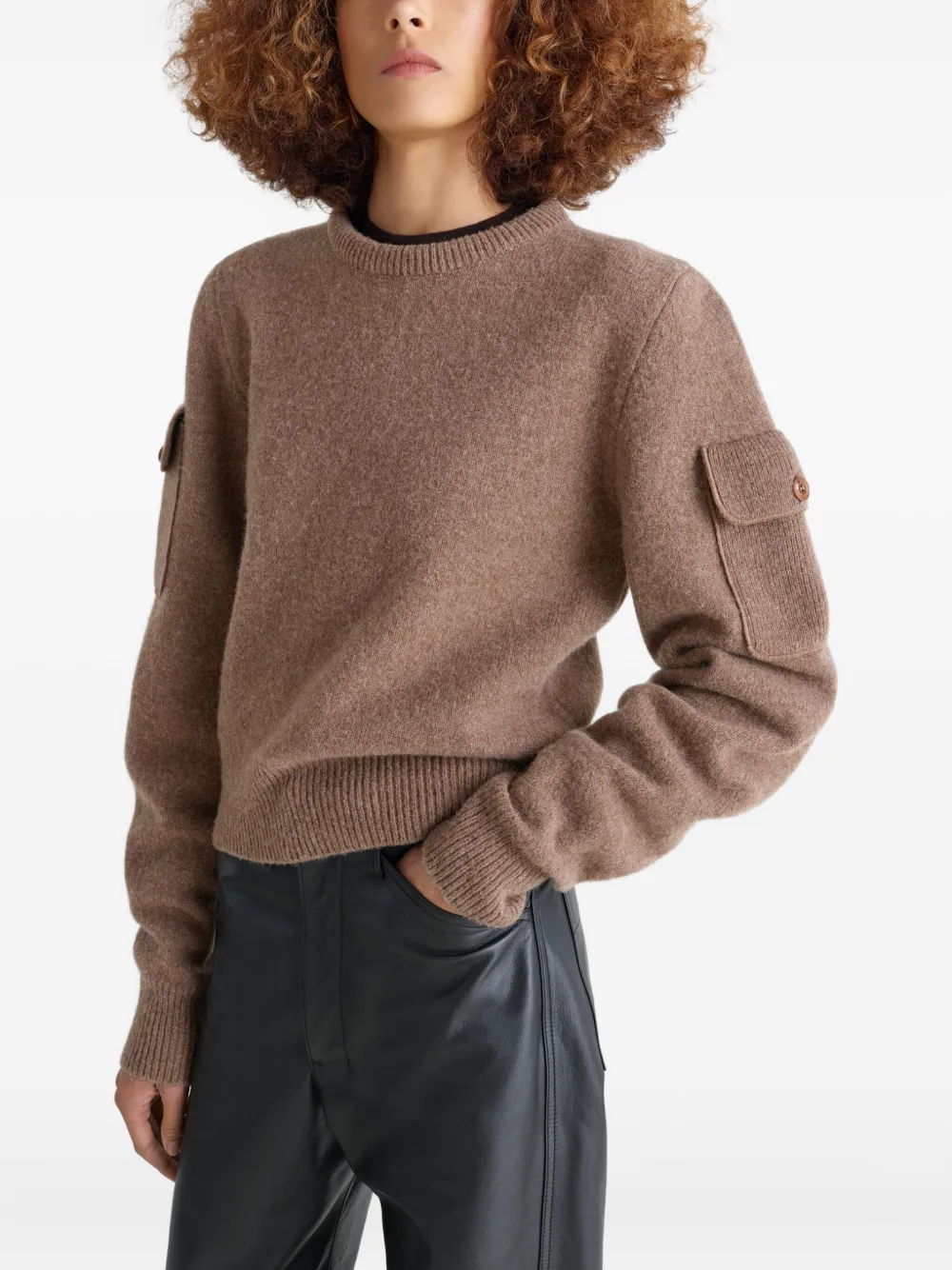 Шерстяной свитер с карманом LEMAIRE, коричневый