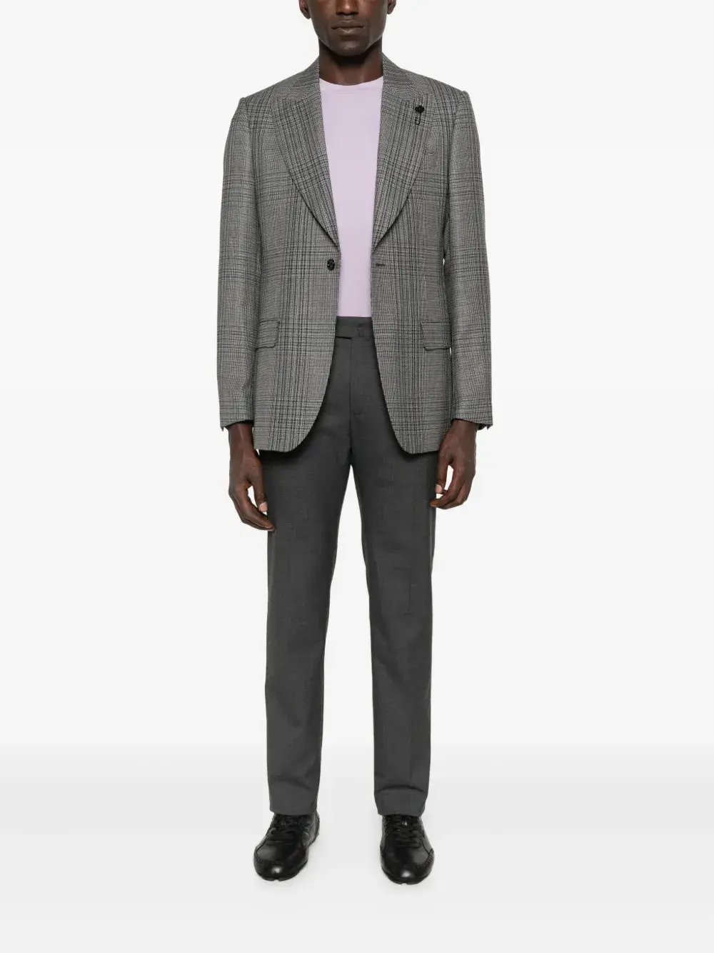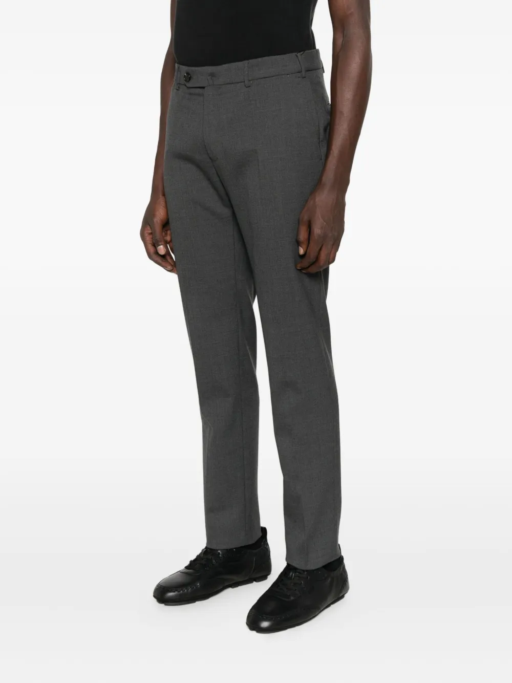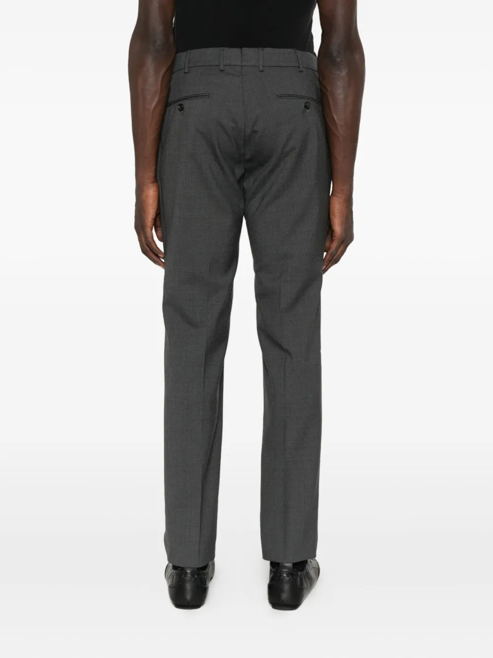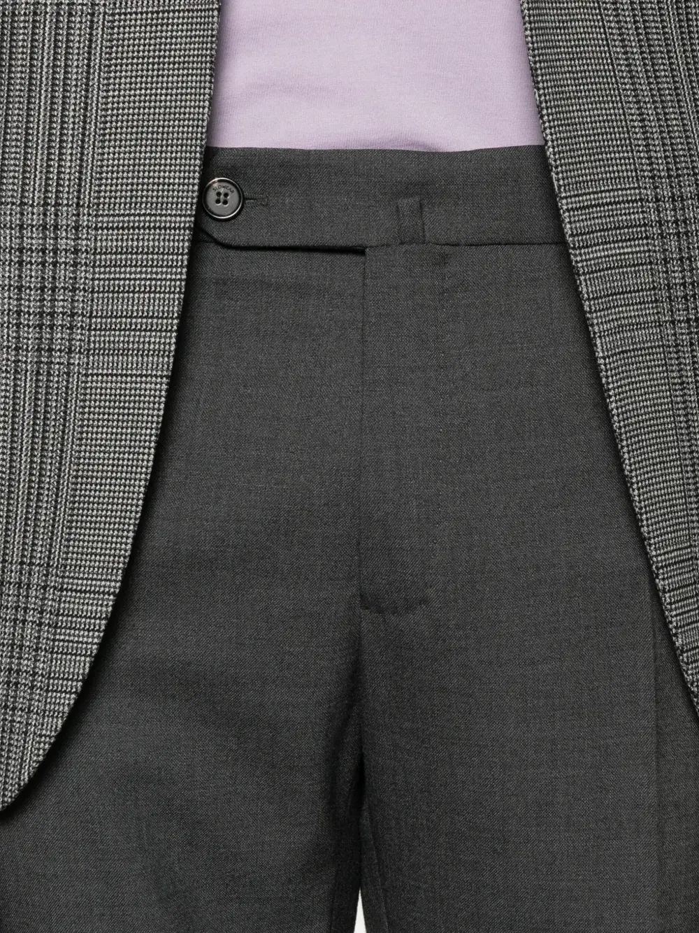 Серая шерсть, застежка на пуговицы, прямой крой, плоский перед, средняя посадка на талии