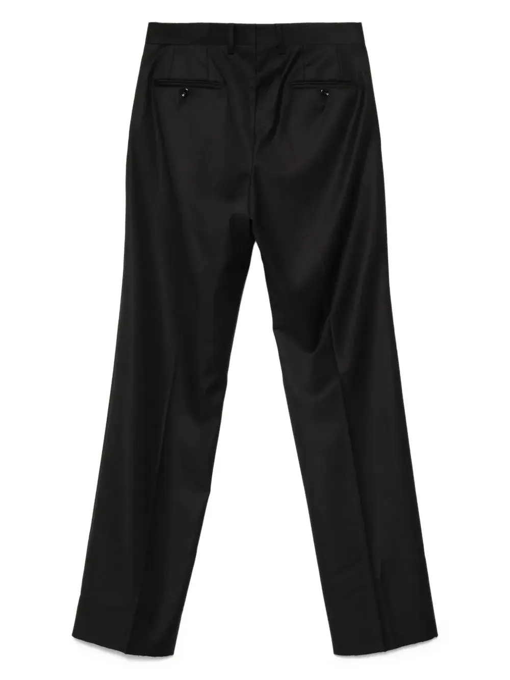 Черная девственная шерсть, потайная застежка спереди, шлевки для ремня, средняя талия, пуговицы сзади, пришивные карманы