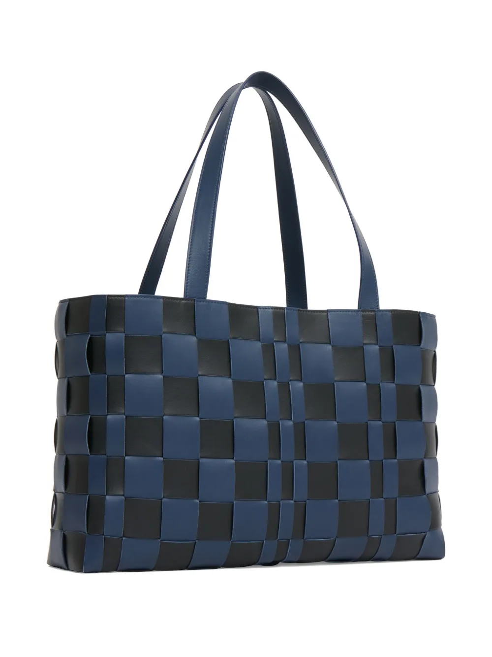 Кожаная конструкция с шахматным узором темно-синего и черного цветов, верхние ручки, открытый верх