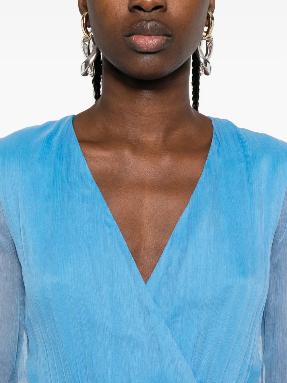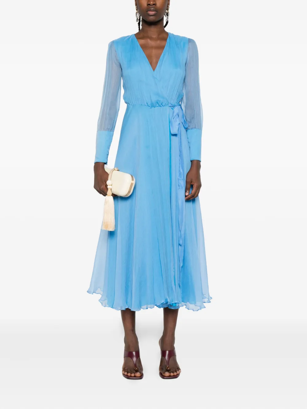 Юбка светло-голубого цвета с длинными рукавами, V-образным вырезом и завязывающимся поясом, плиссированная юбка