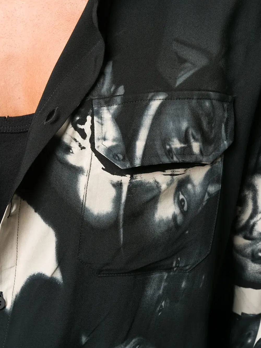 Классический воротник, застежка на пуговицах спереди, два нагрудных кармана с клапанами, длинные рукава, закругленный подол и свободный крой. Цвет: черный.