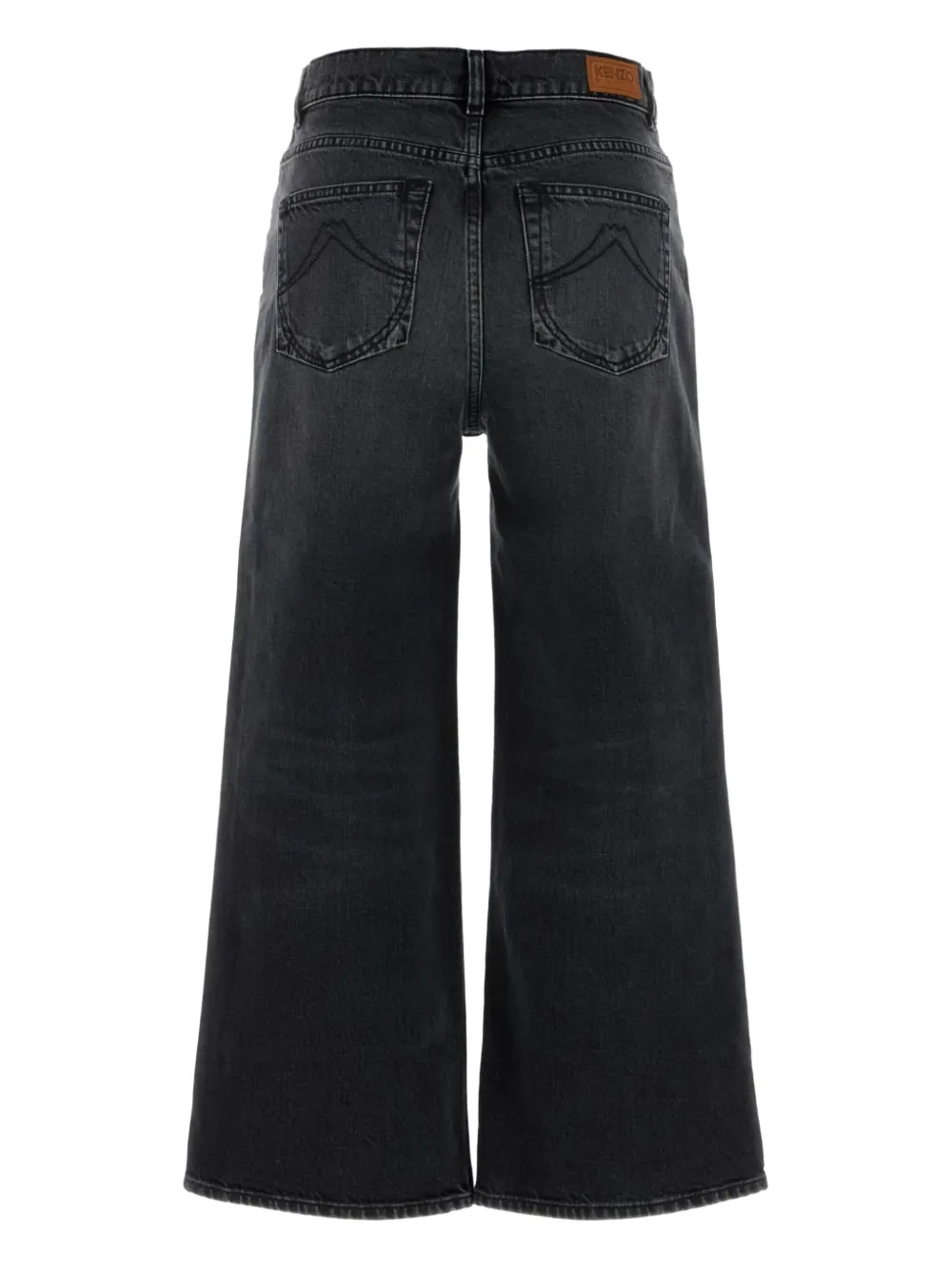 Широкие брюки из черной хлопковой смеси, застежка на пуговицы спереди, классический стиль с пятью карманами, нашивка с логотипом сзади