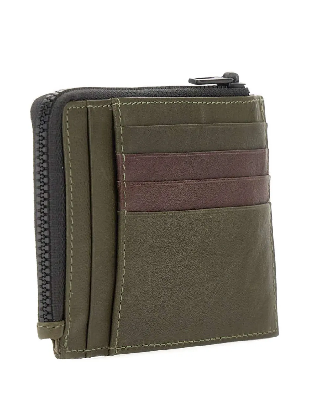 Отделение для монет из оливково-зеленой кожи с несколькими отделениями для карт, нашивкой с логотипом