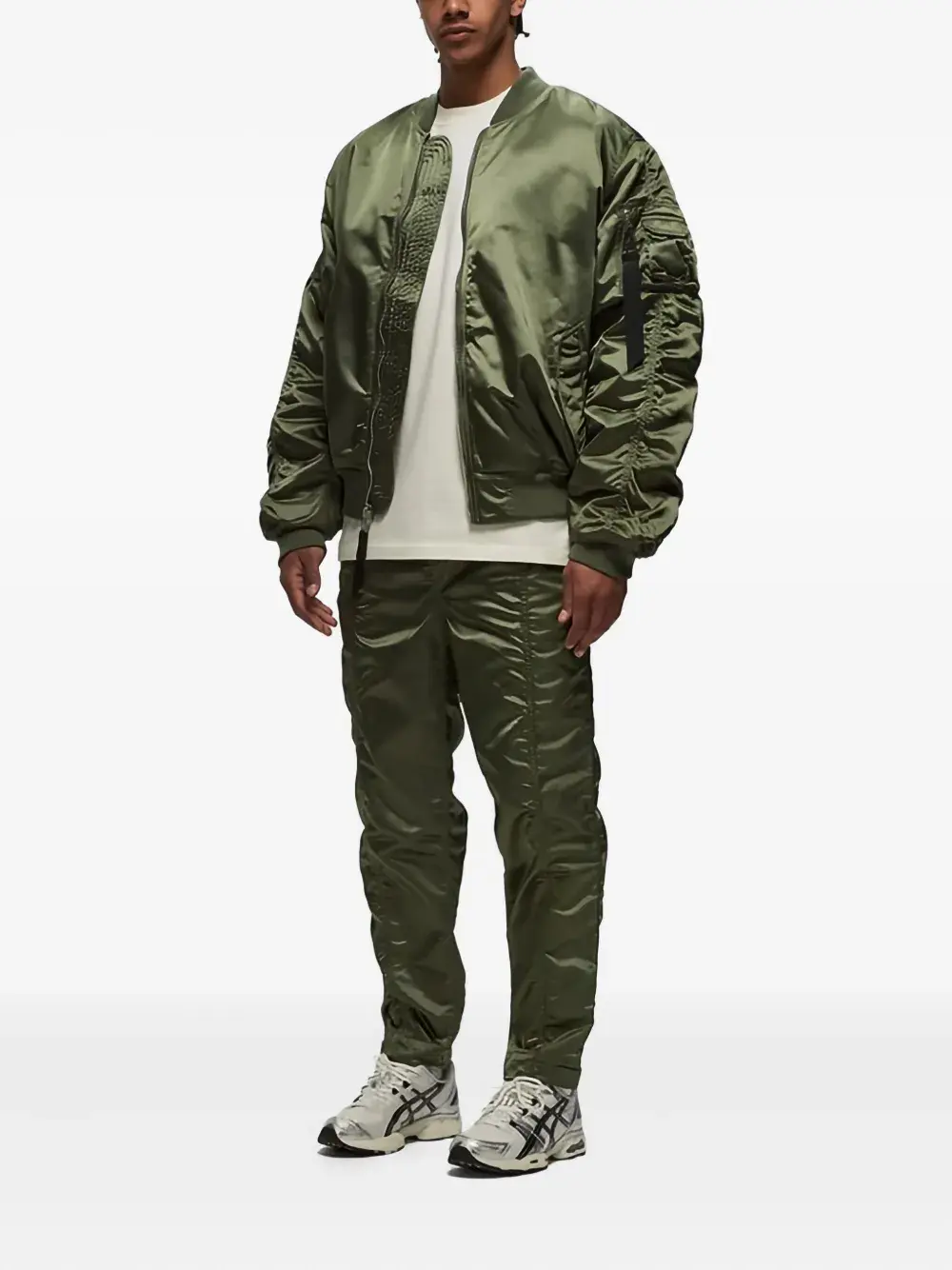 Застежка-молния шалфейно-зеленого цвета, ребристые манжеты, карман для мелочей, карман на рукаве