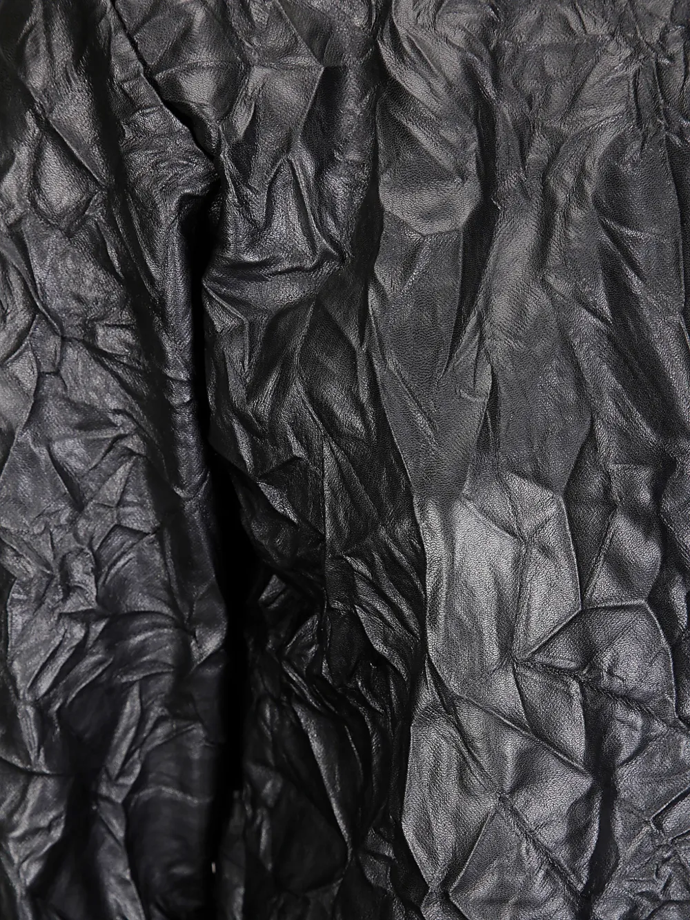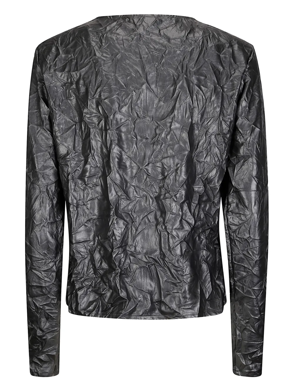 Черная мятая текстура, застежка-молния, длинные рукава, круглый вырез.