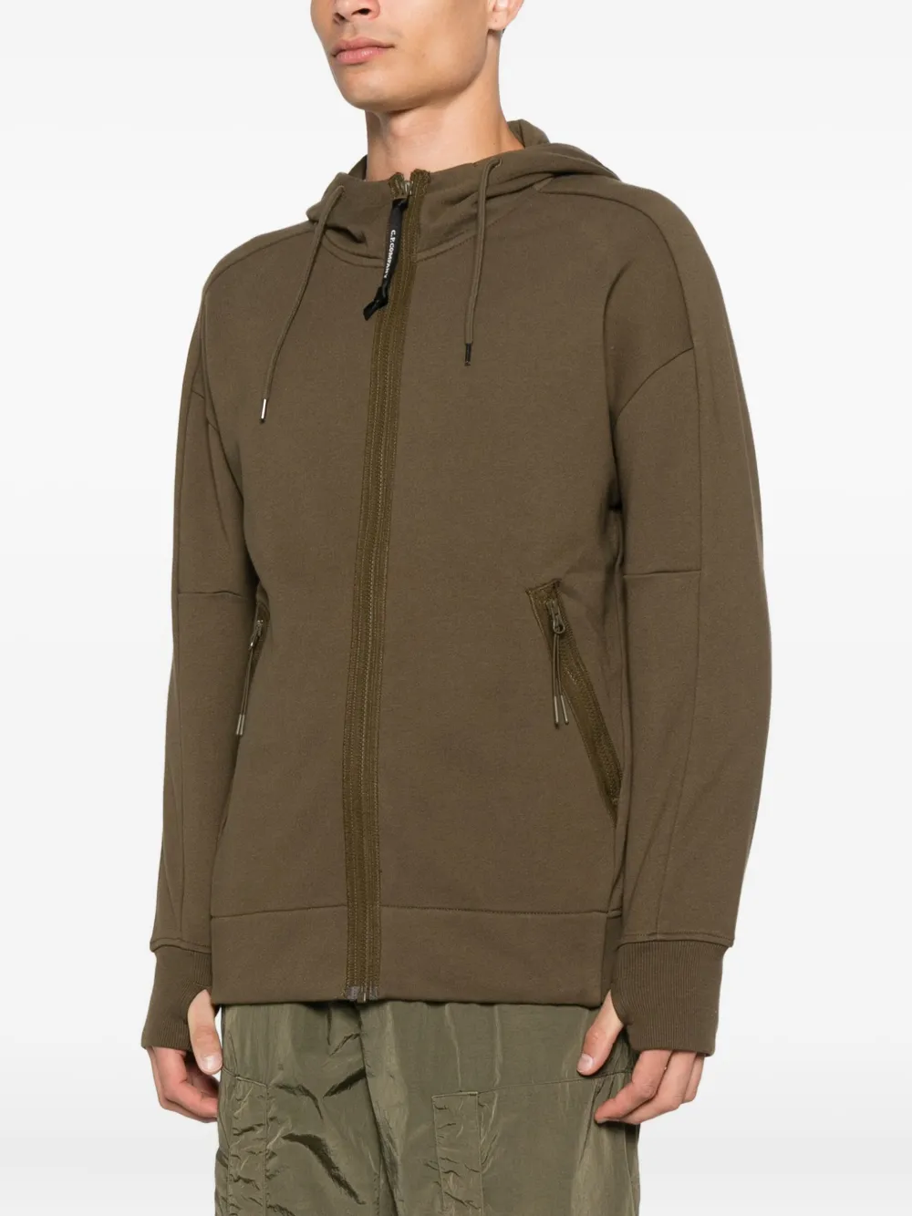 Толстовка с капюшоном на молнии спереди C.P. Company, зеленый