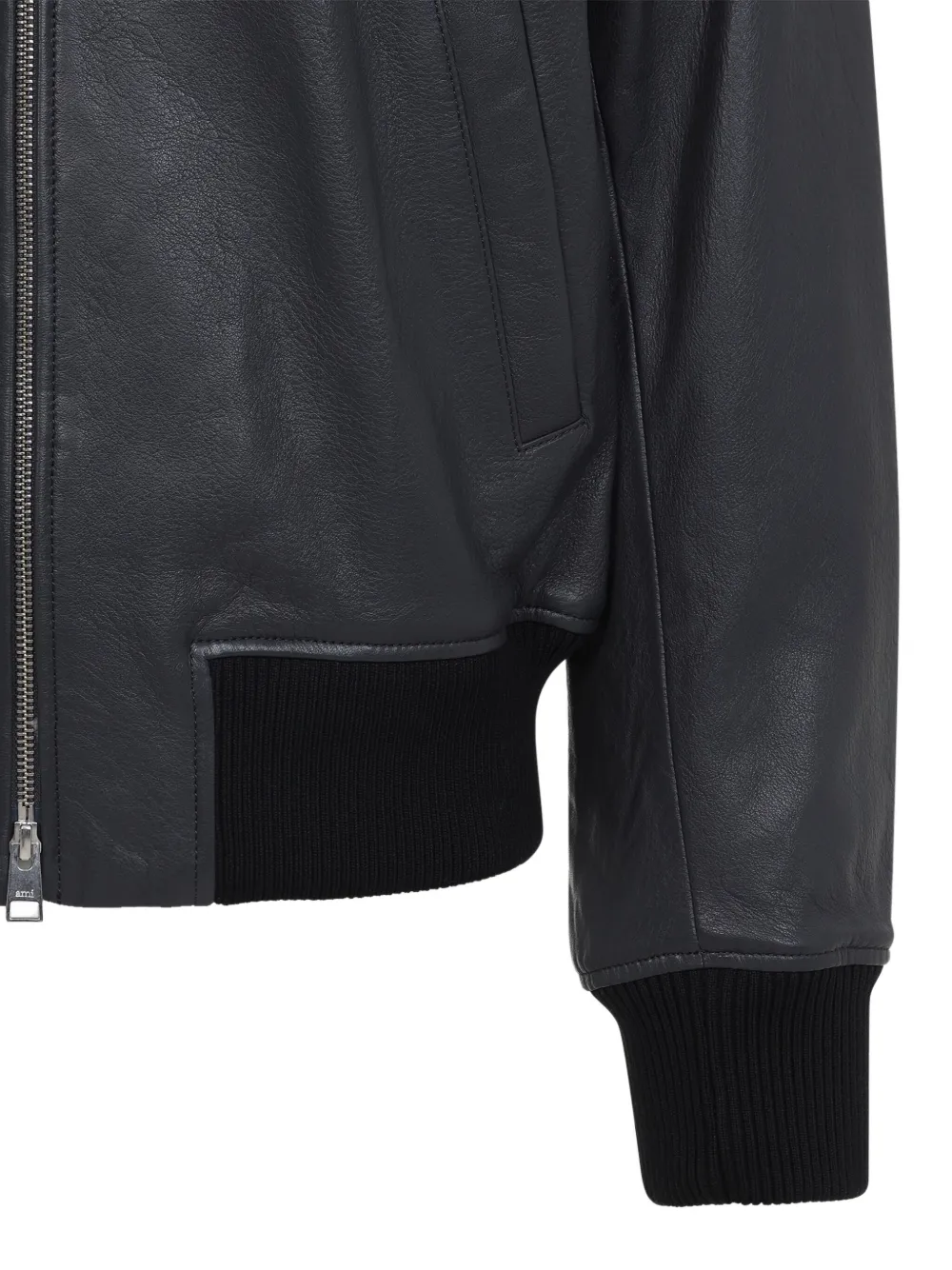 Кожаная куртка на молнии спереди AMI Paris, серый