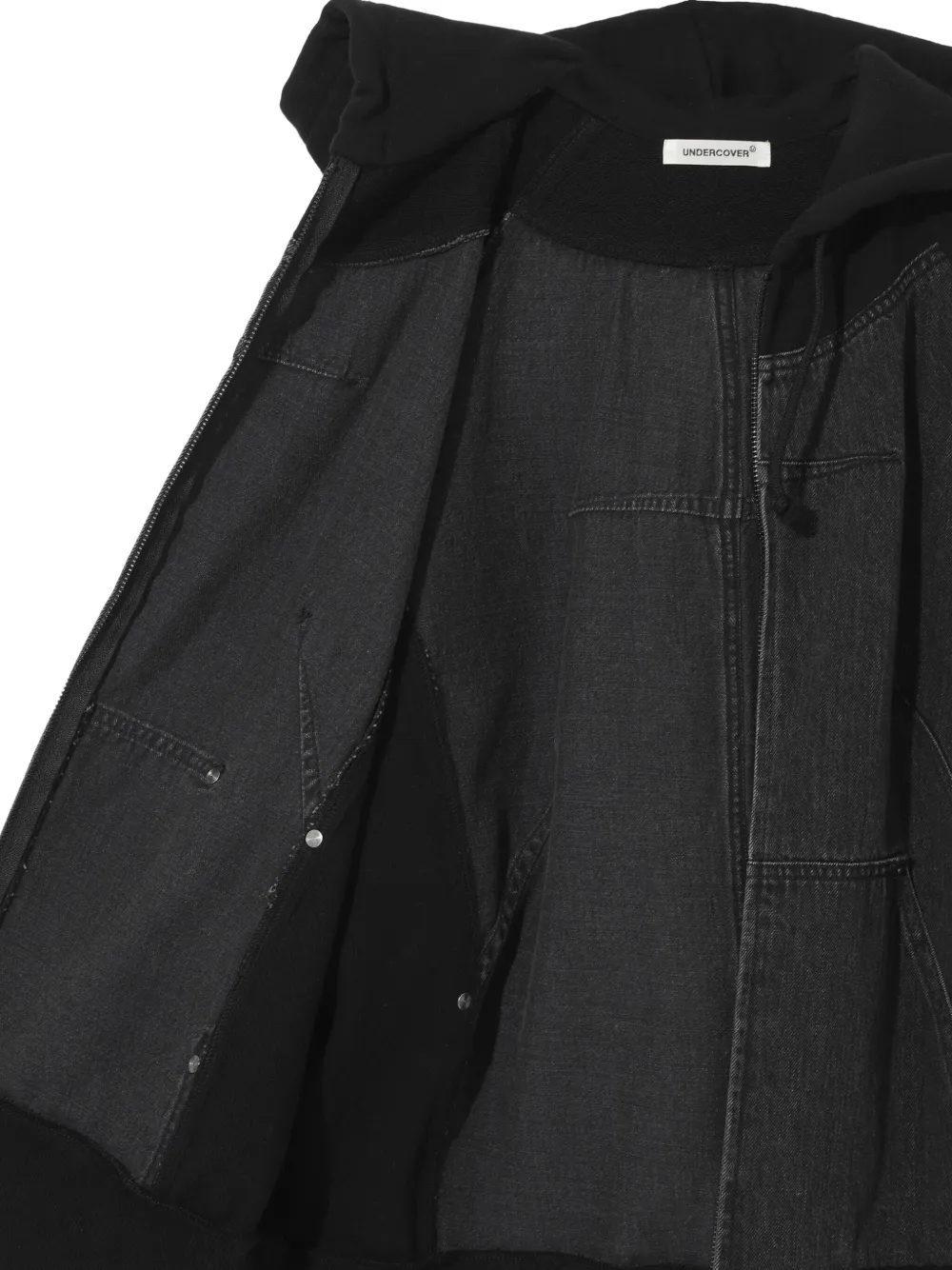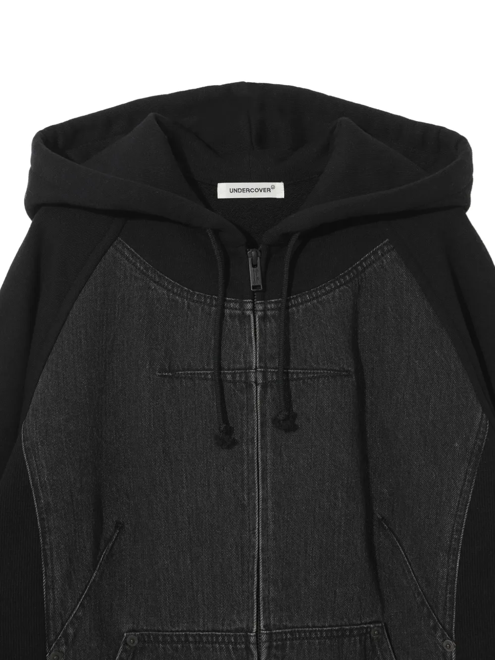 Худи на молнии со вставками из денима Undercover, черный