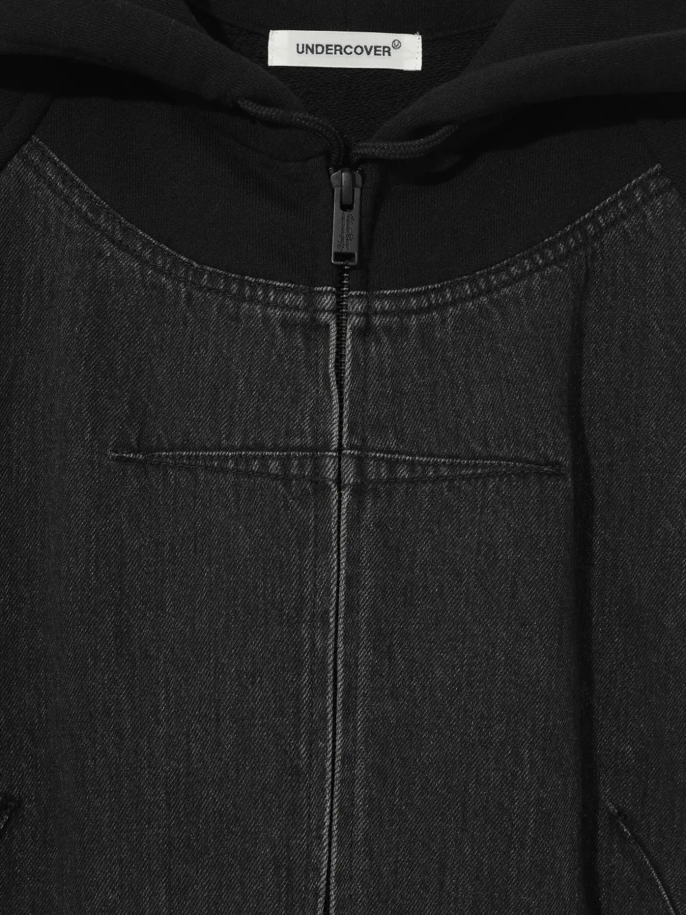Худи на молнии со вставками из денима Undercover, черный 50 585₽