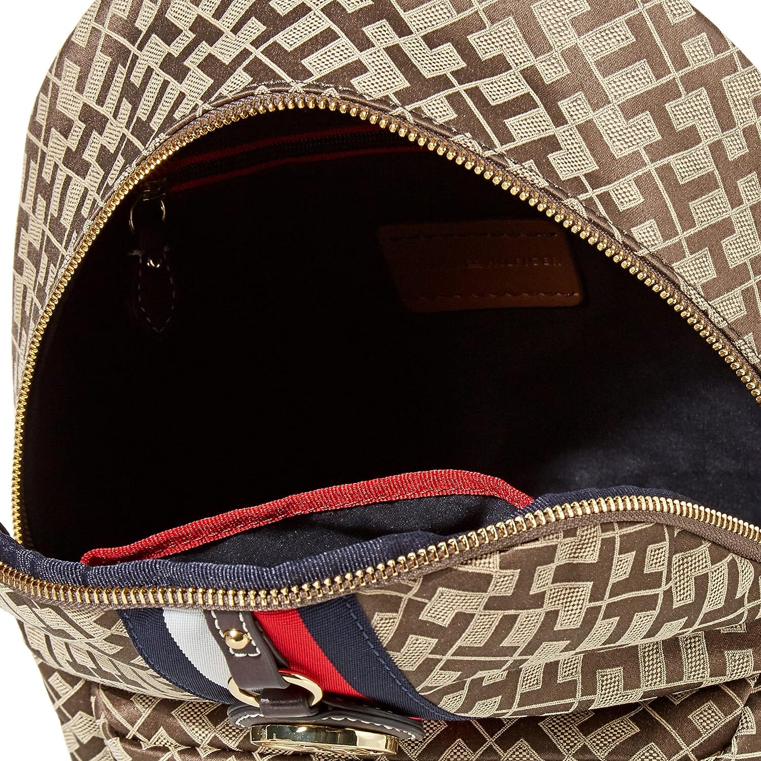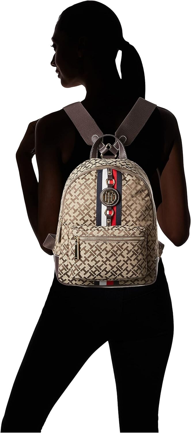 Женский мини-рюкзак с фирменной полосой Tommy Hilfiger и золотой фурнитурой TH. Внешний передний карман с золотой молнией. Верхний карман на молнии и верхняя ручка. Регулируемые лямки с золотой фурнитурой. Внутренняя отделка из нейлона с подкладкой, внутренним карманом на молнии и накладным карманом. Этот рюкзак Tommy Hilfiger - универсальная вещь, идеальный для работы или развлечений.