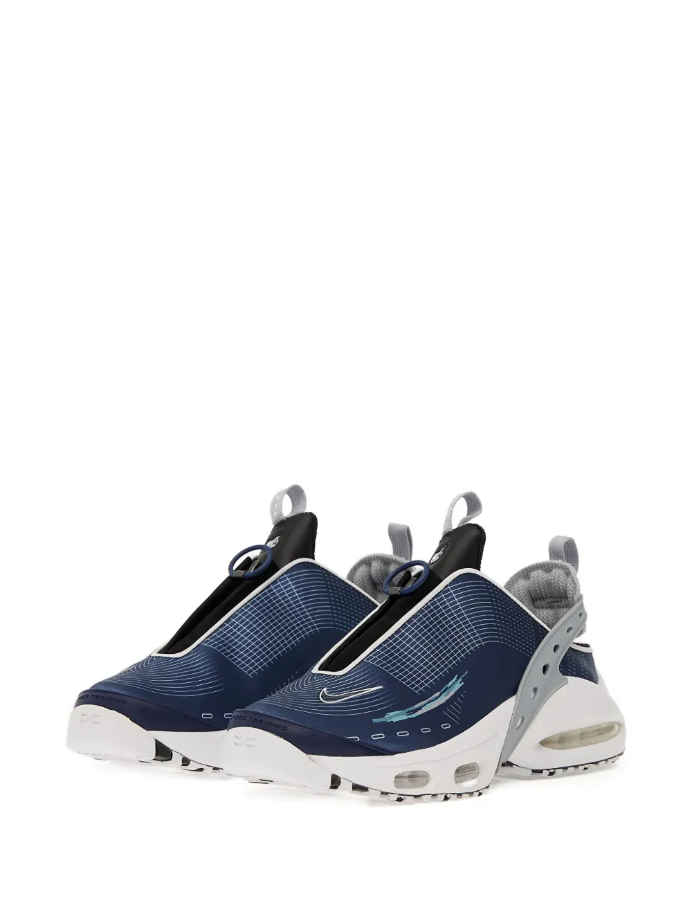 Темно-синий сетчатый узор, застежка-молния, ремешок на пятке, видимая воздушная вставка, узорчатая подошва