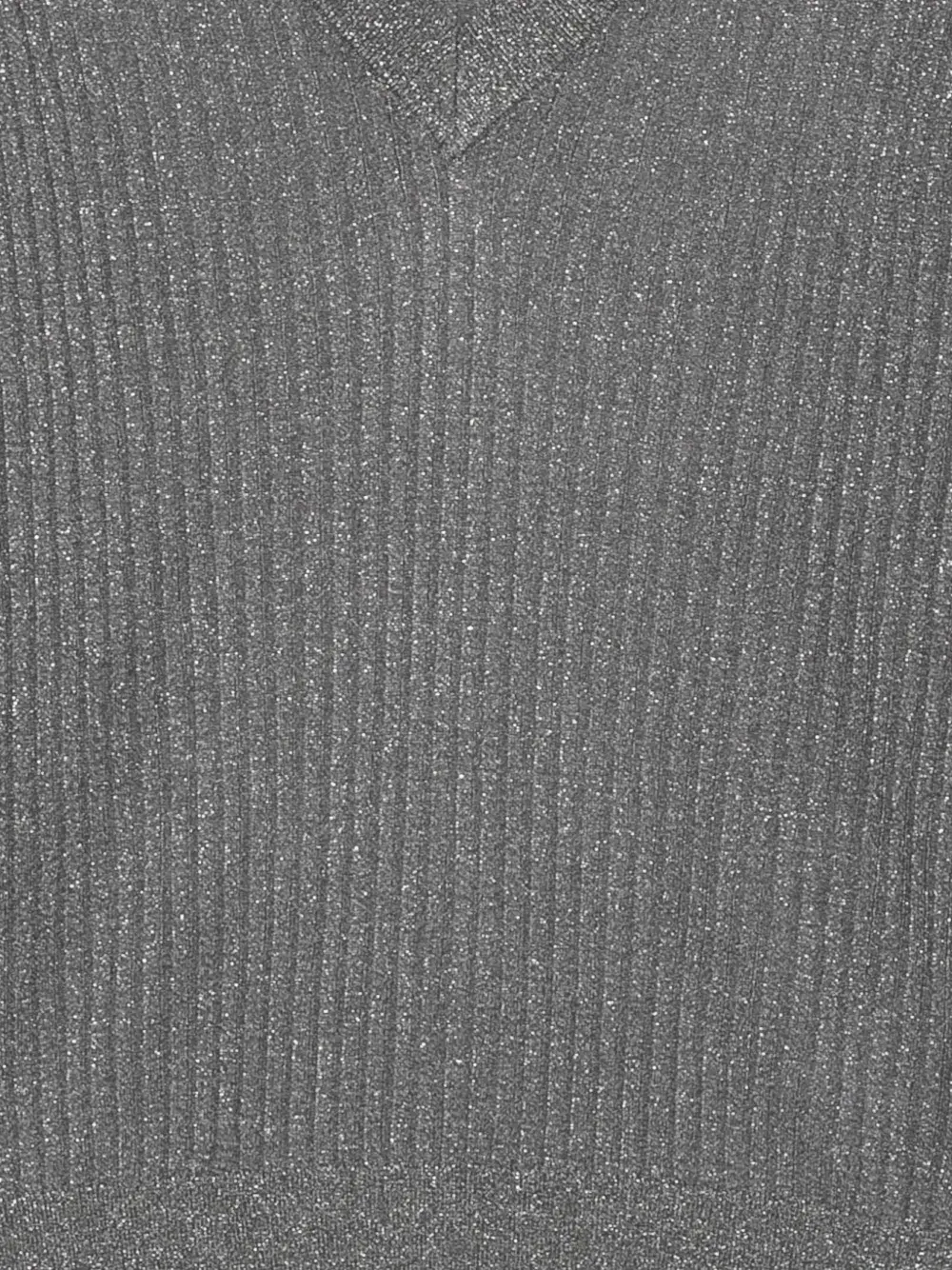 Серый металлический эффект, ребристая фактура, V-образный вырез, длинные рукава
