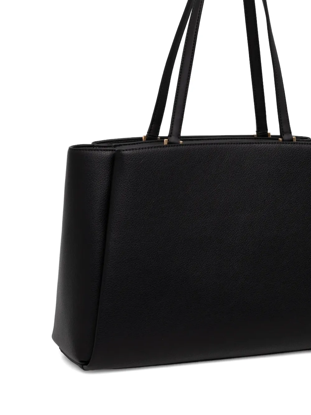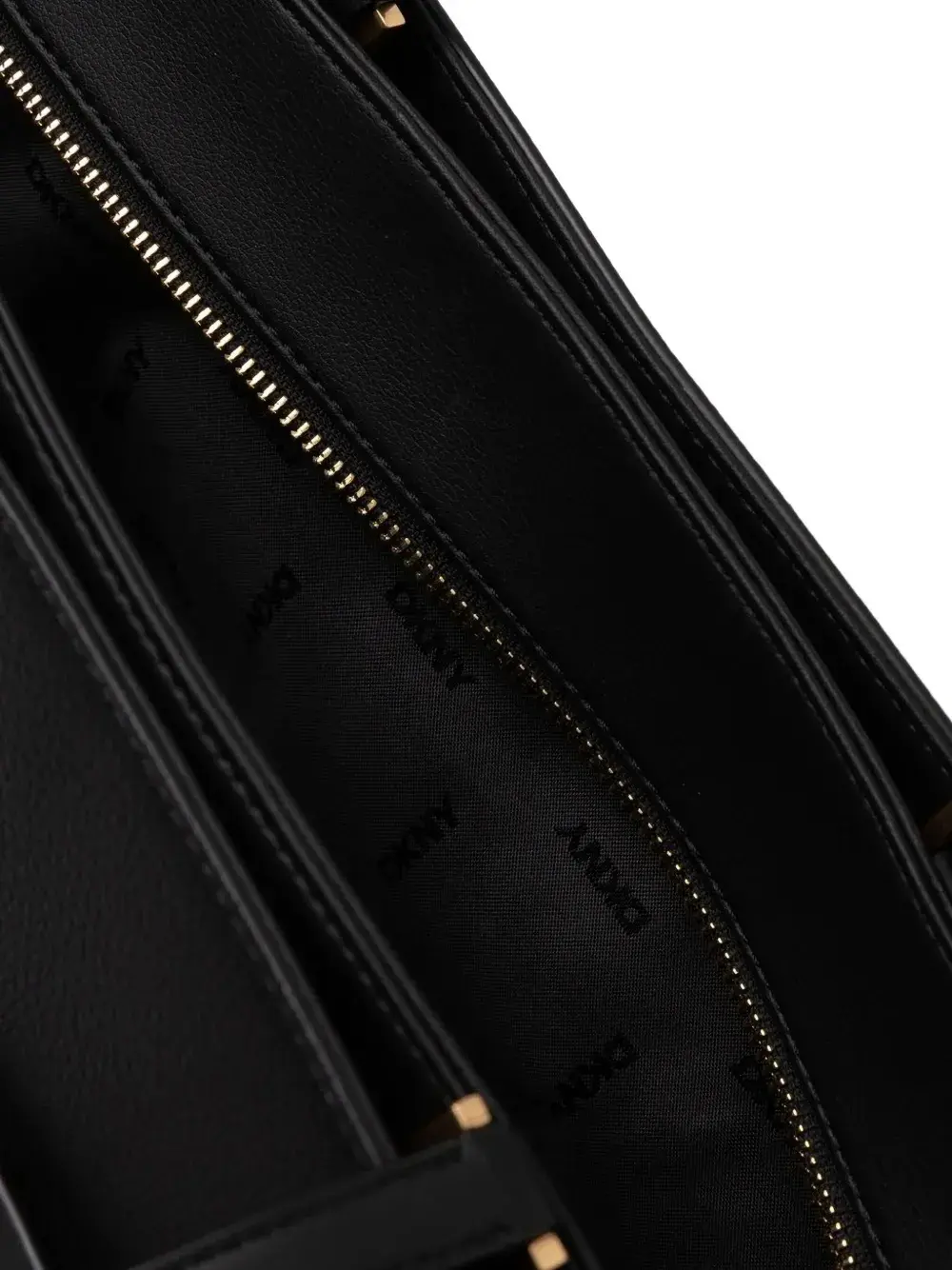 Деталь с пряжкой черного золотистого оттенка, две верхние ручки, застежка-молния сверху, структурированная форма.