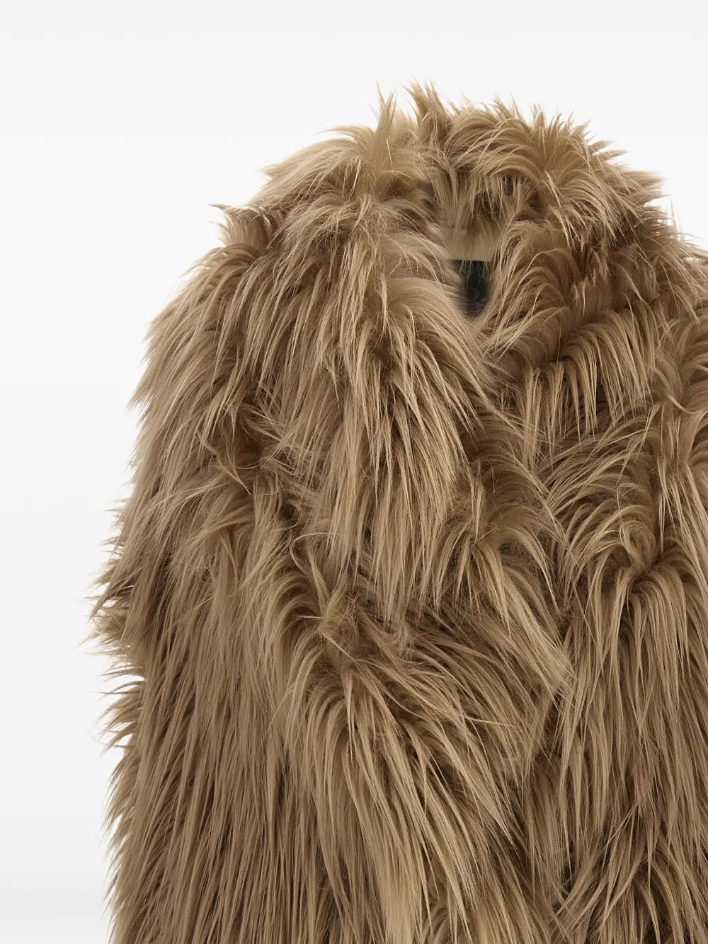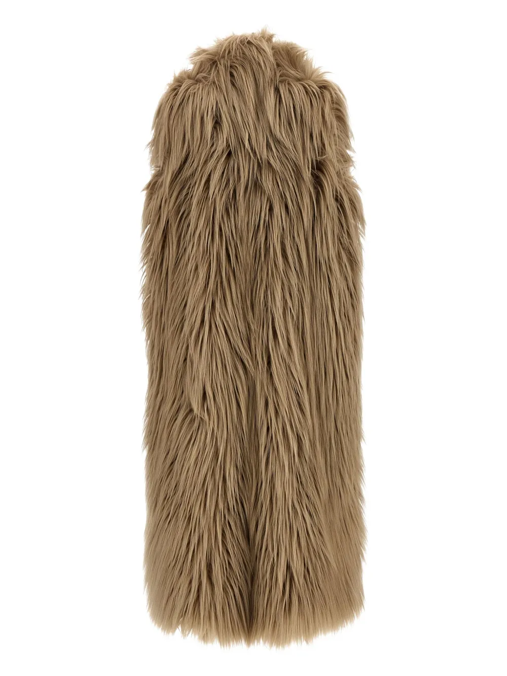 Бежевый длинноворсный искусственный мех без рукавов, длинная длина