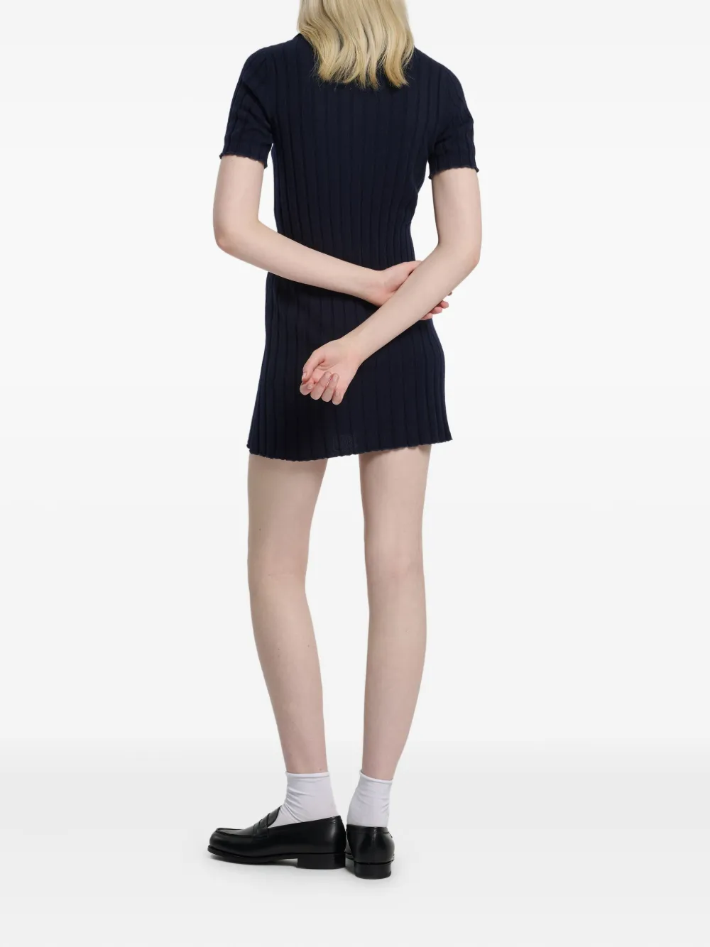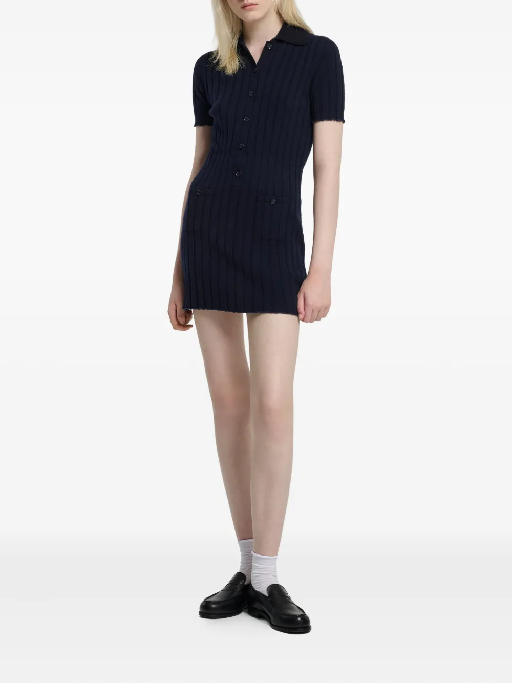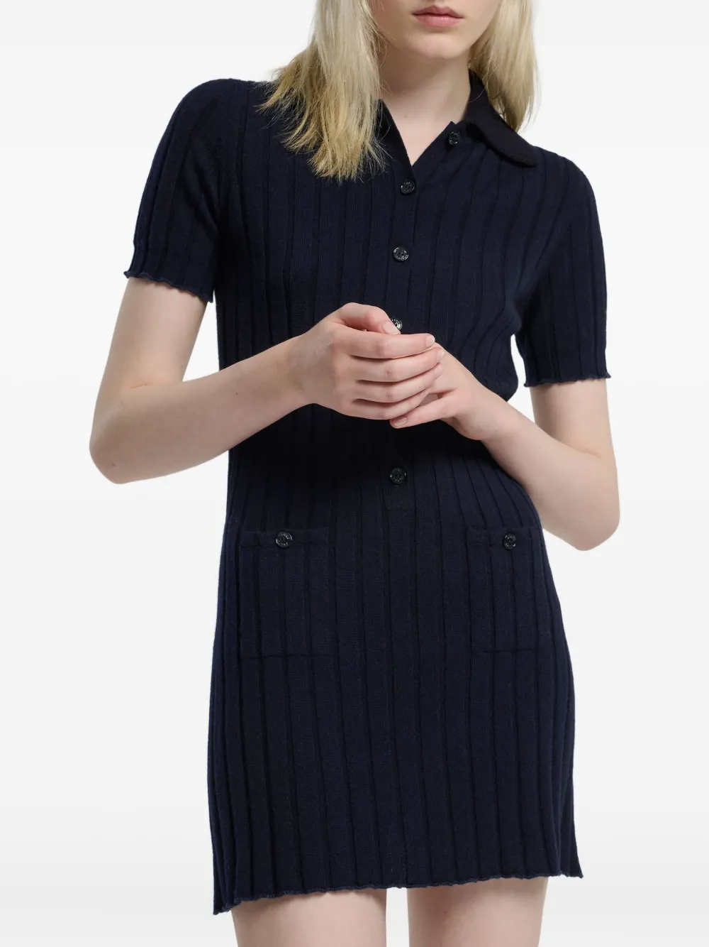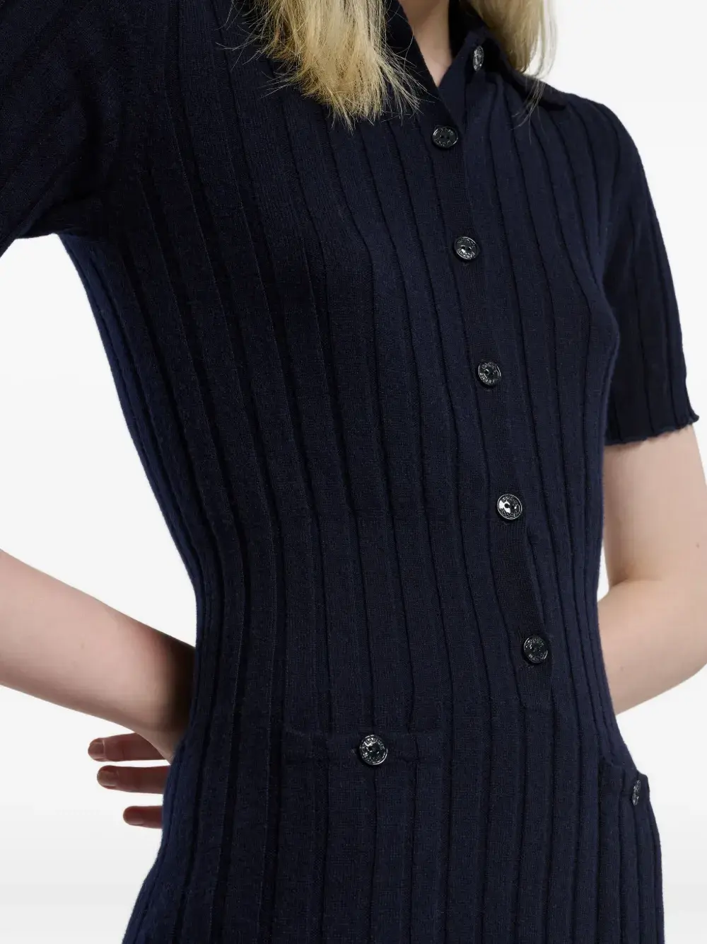 Короткие рукава, ребристый трикотаж, воротник-поло, планка с пуговицами, темно-синяя