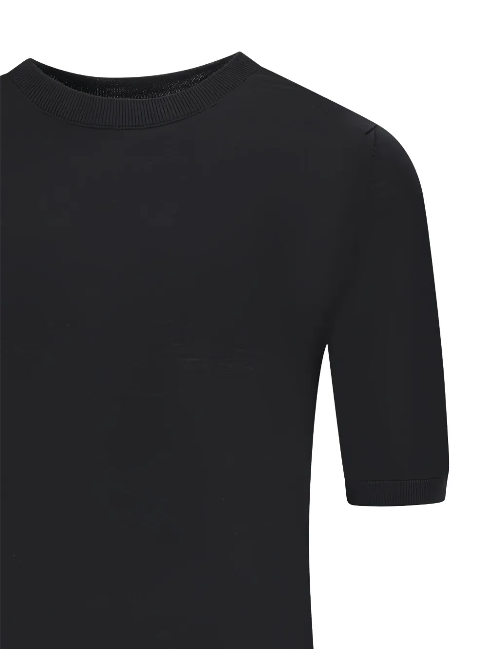 Черный, короткий рукав, круглый вырез, прямой подол, трикотаж.