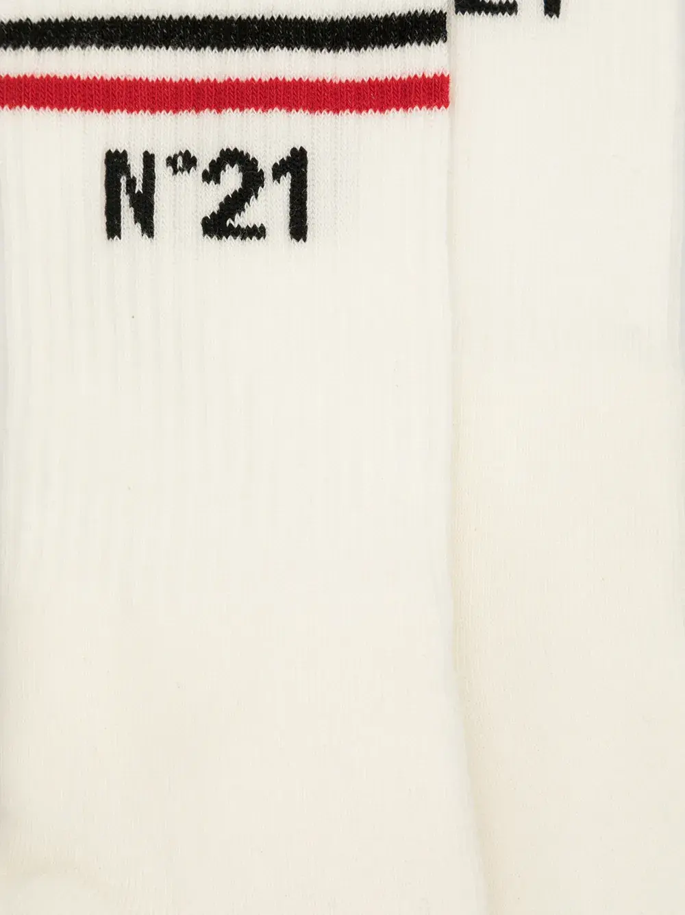 Носки с принтом логотипа от Nº21. Отделка в рубчик и горизонтальные полоски.