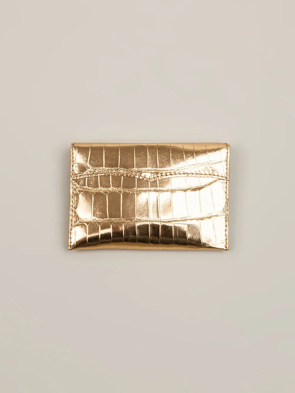 Золотистый кошелёк 'Envelope' из кожи аллигатора от L'eclaireur By Jean Rousseau. Зернистая фактура кожи, металлический отблеск.