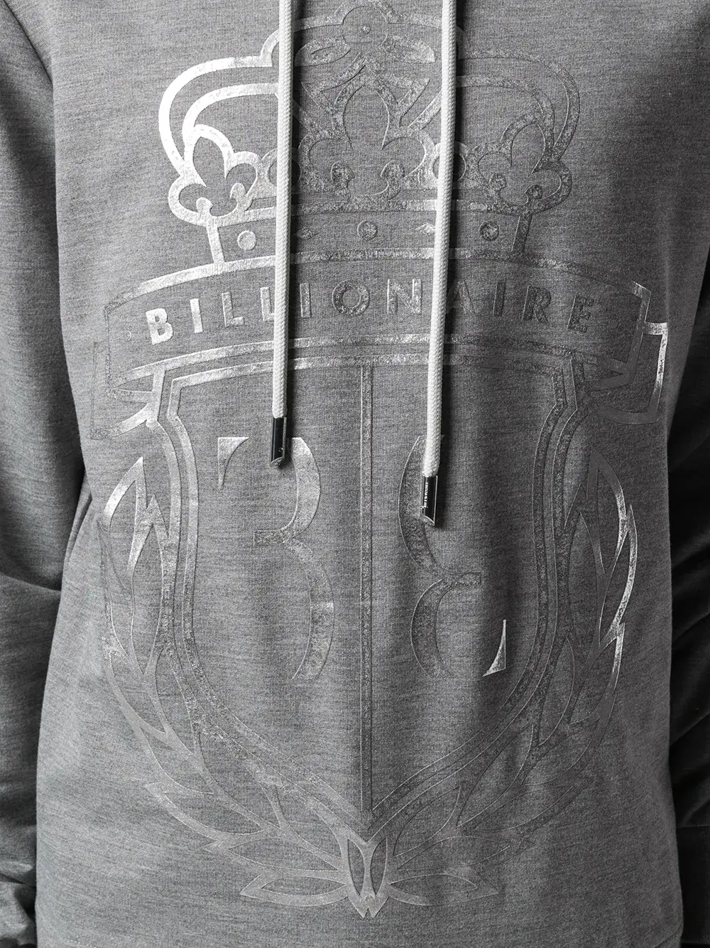 Принт с эффектом металлик, объемный капюшон на шнурке, длинные рукава и модель анорак. Цвет: серый.