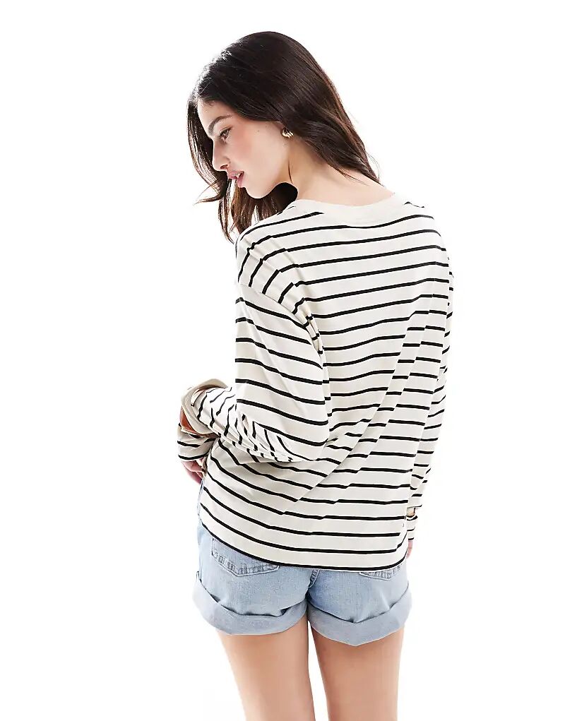 Топ Monki oversize с длинными рукавами в однотонную полоску