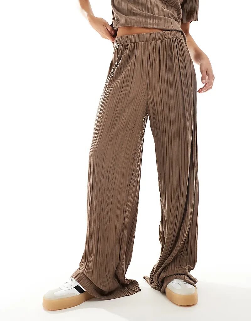 Vila Брюки wide leg plisse trouser co-ord in brown