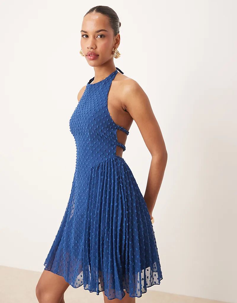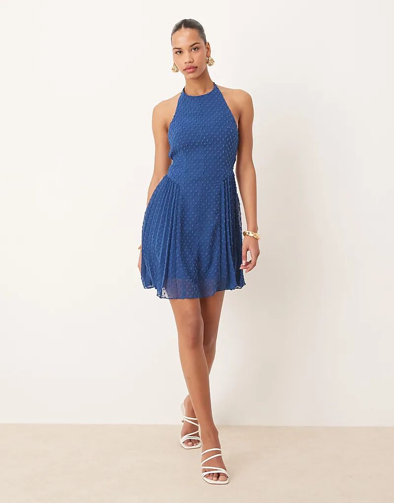 Темно-синее пышное мини-платье с воротником-борцовкой и складками ASOS DESIGN