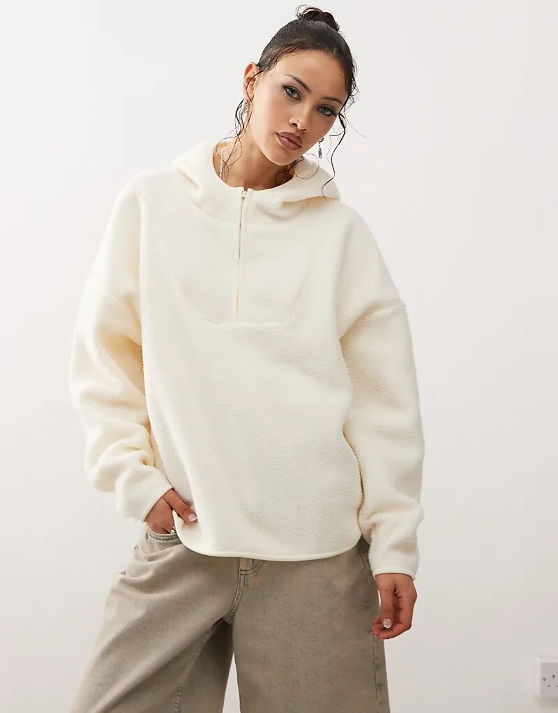 Noisy May Флисовая кофта с капюшоном на молнии 1/4 кремового цвета