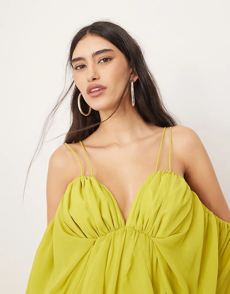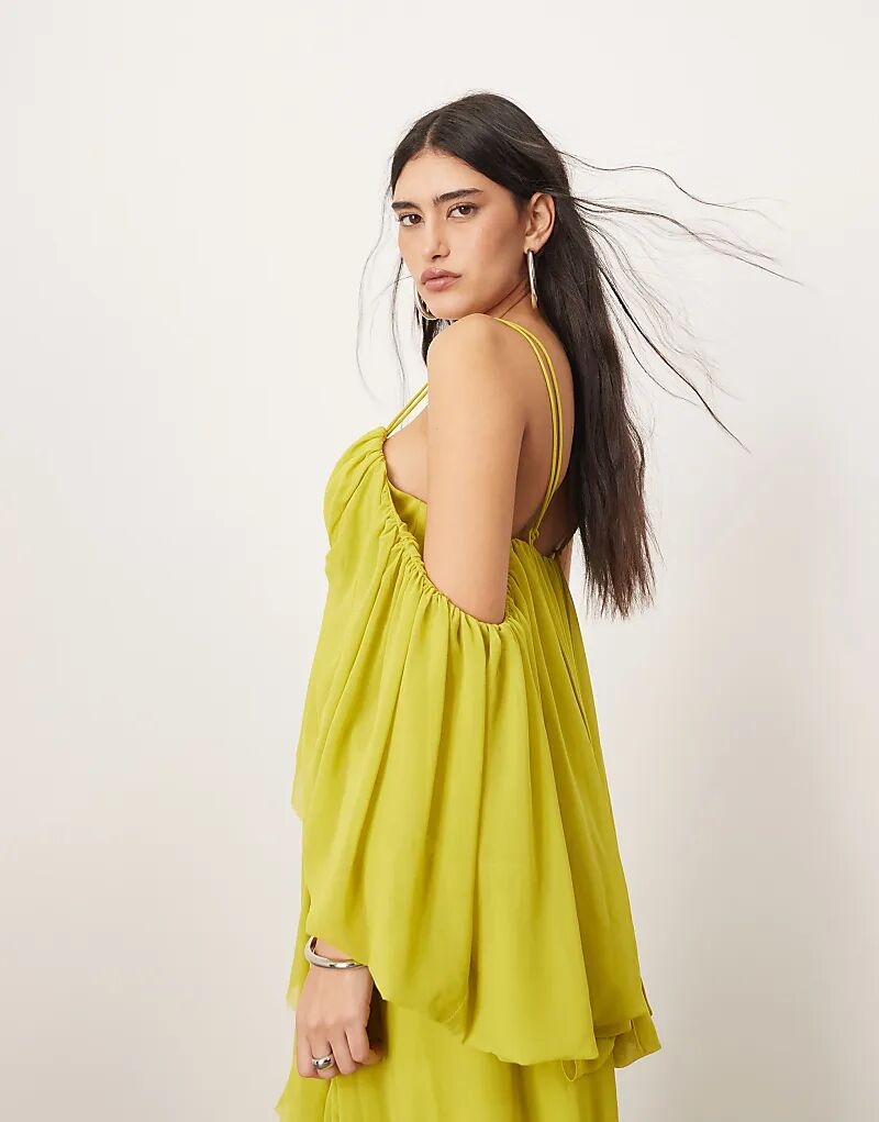 Платье миди ARRANGE с открытыми плечами и оборками цвета лайм