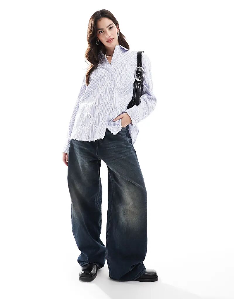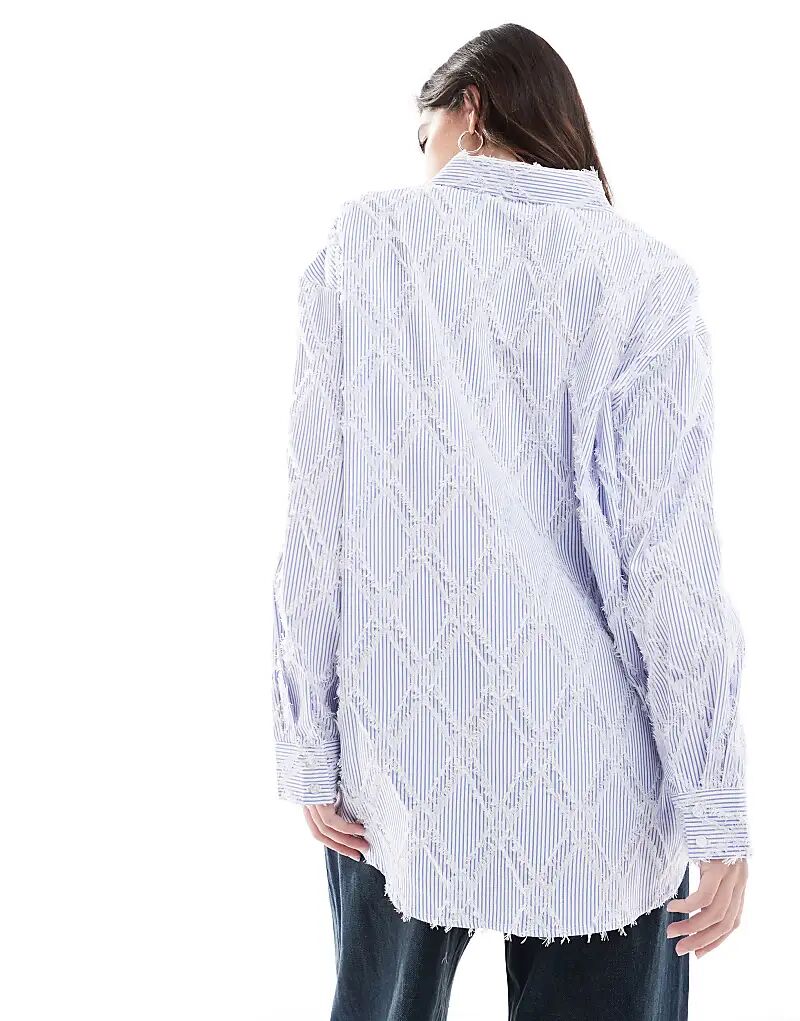 свободная рубашка с ресничками в синюю полоску 3 192₽