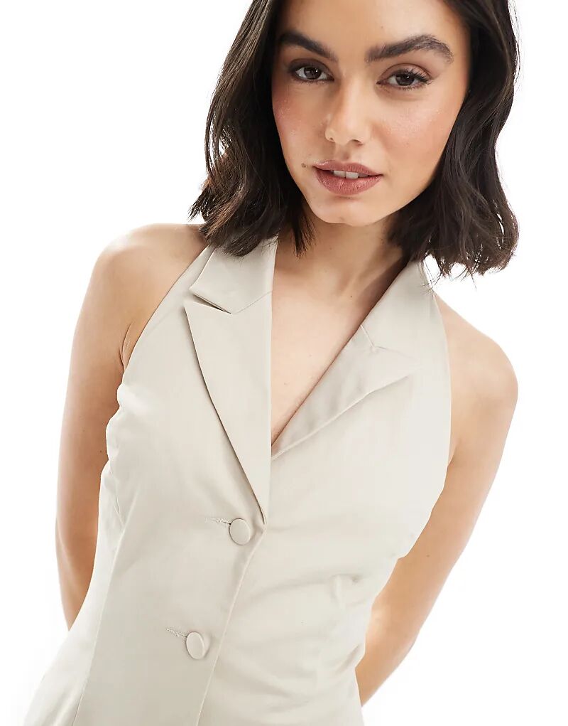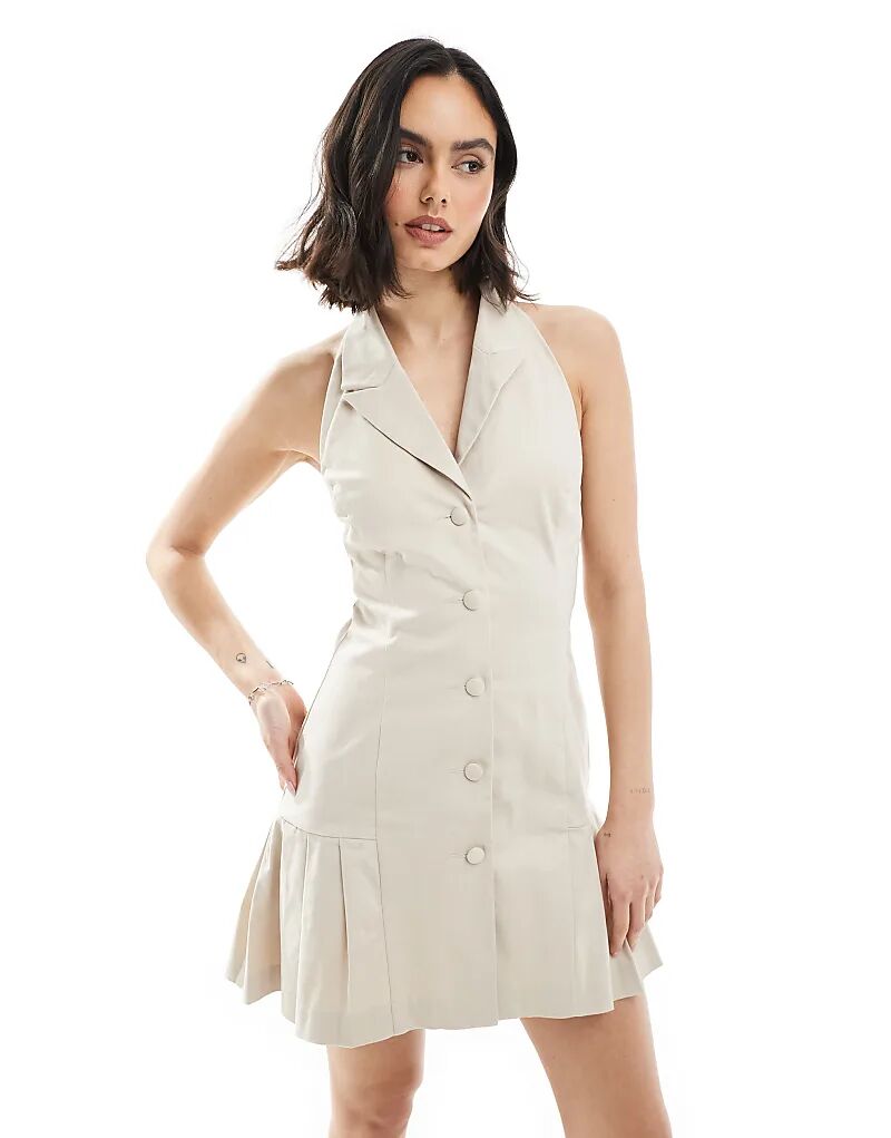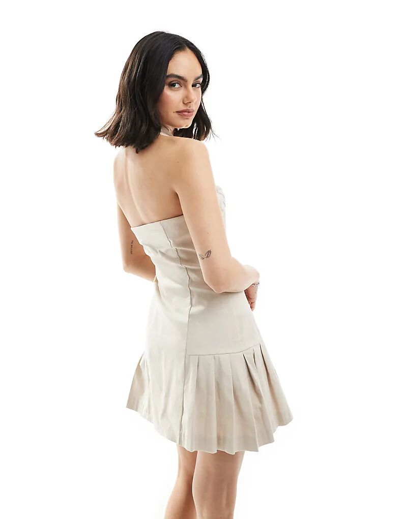 Мини-платье Miss Selfridge с лифом на шее бежевого цвета