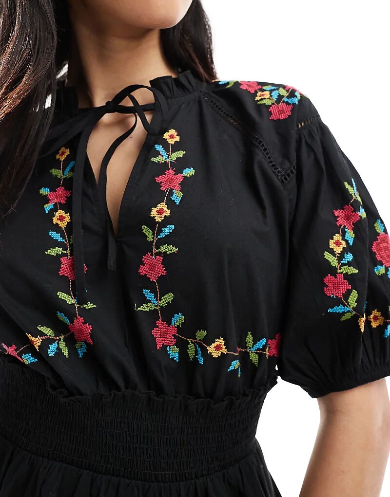 Мини-платье Miss Selfridge в стиле вестерн с вышивкой, черное