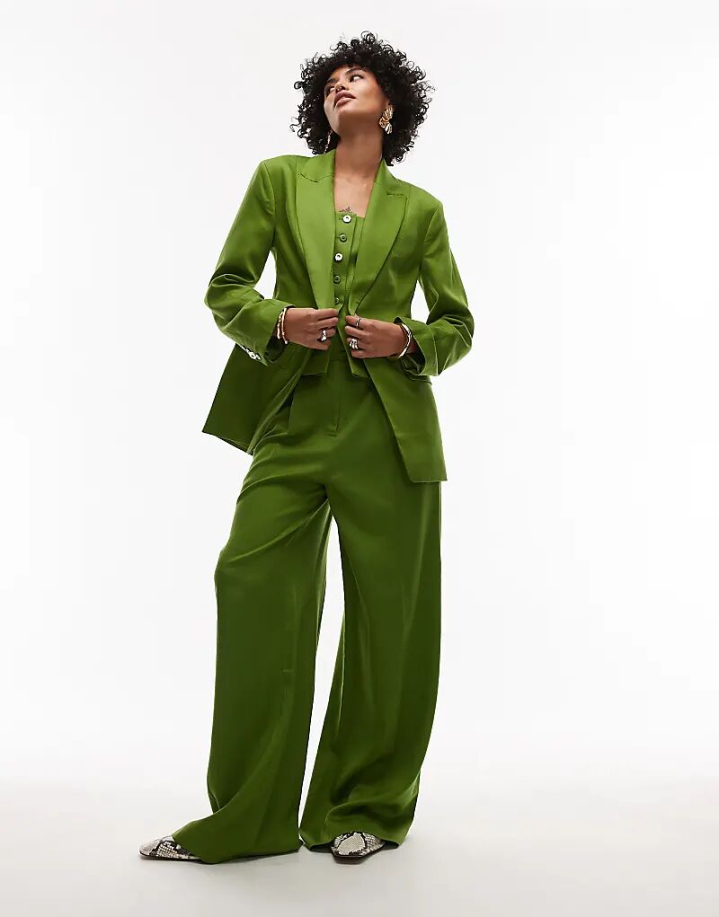 Блейзер Topshop coord премиум-класса для гостей на свадьбу в зеленом цвете