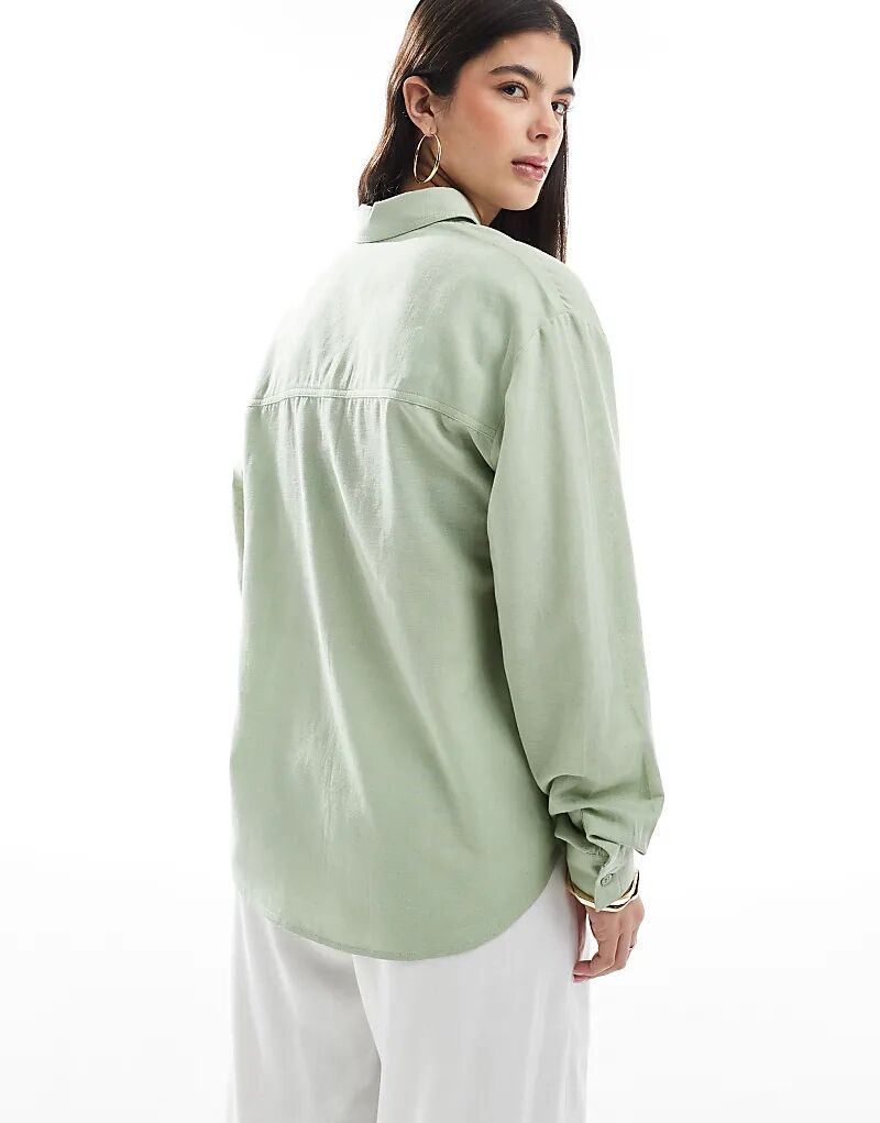 Рубашка из льняной смеси ASOS DESIGN цвета хаки