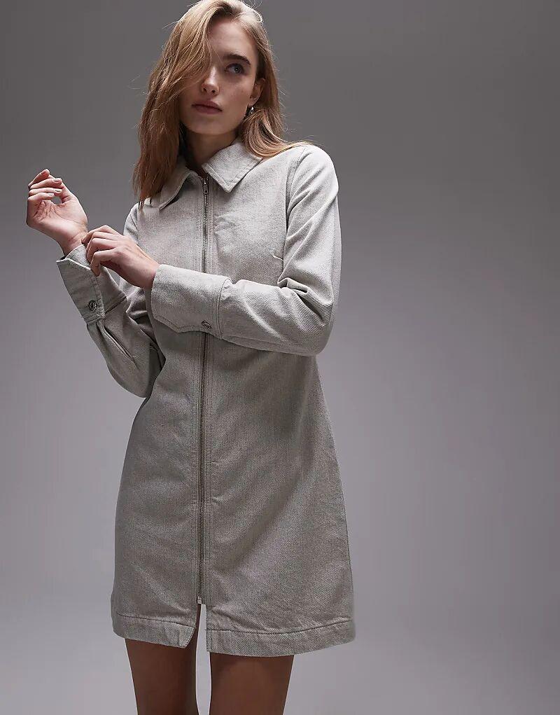 Платье-рубашка из денима Topshop цвета экрю