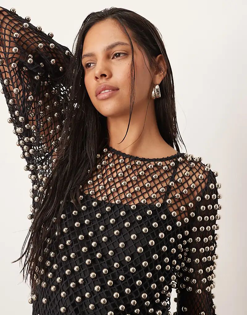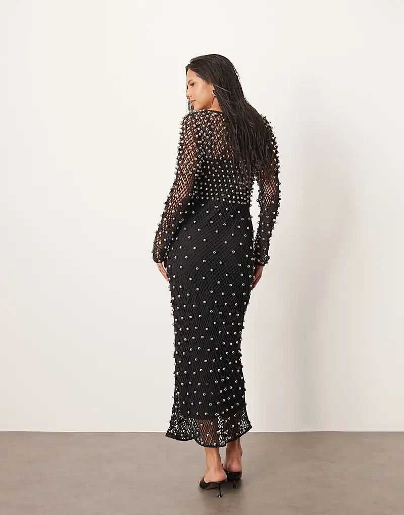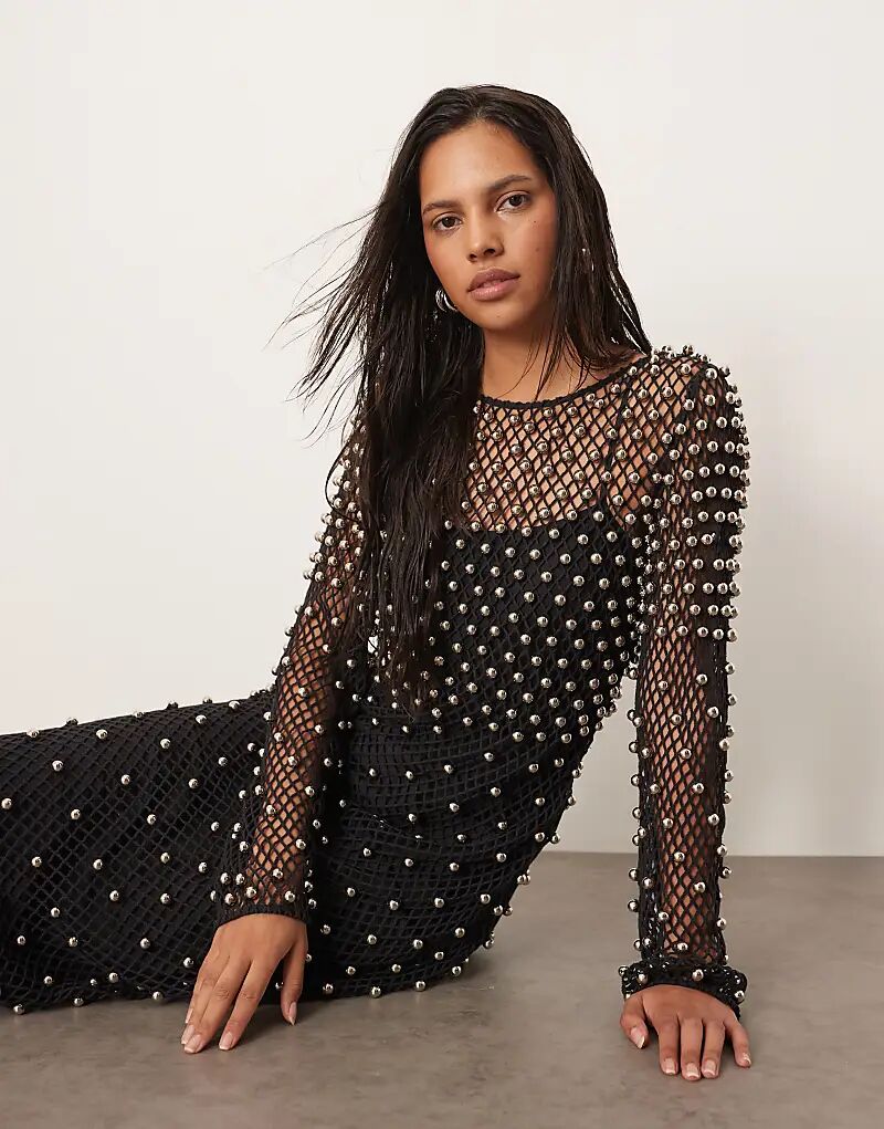 Платье макси ARRANGE с длинными рукавами из сетки с декором, черное