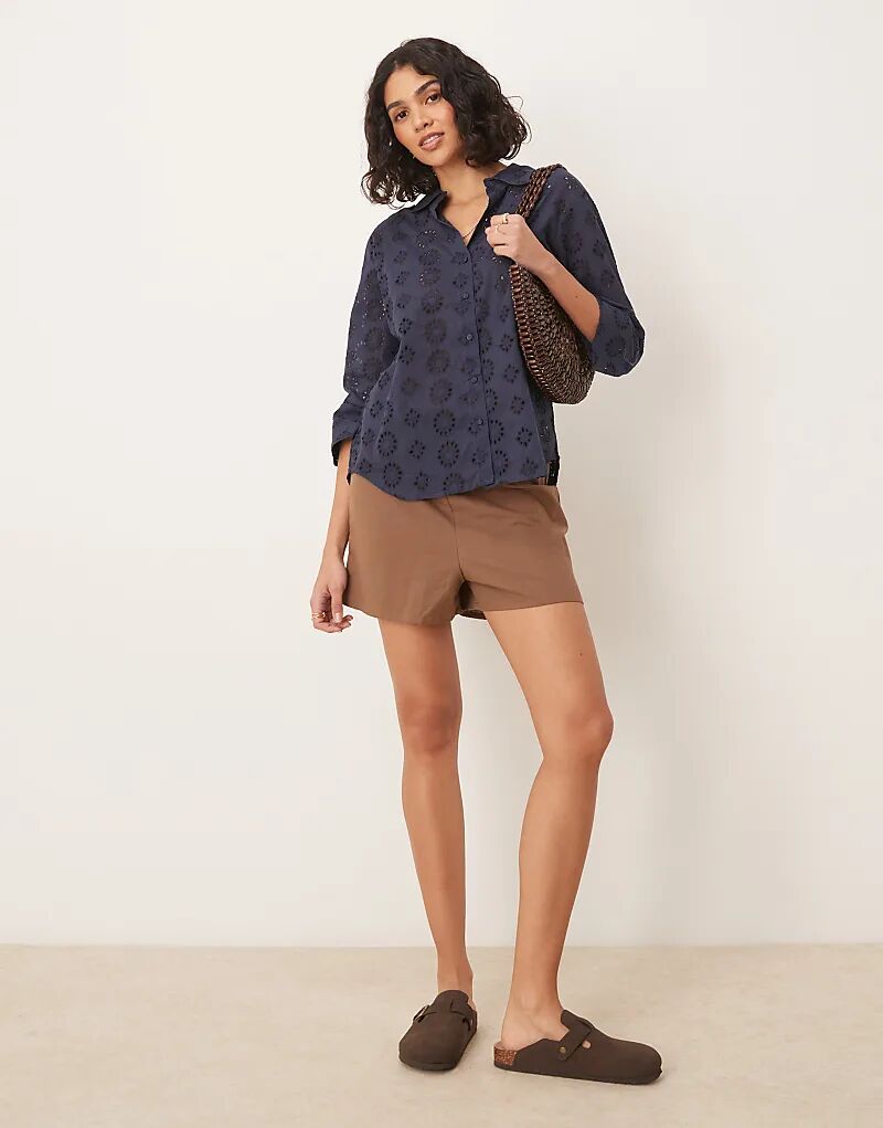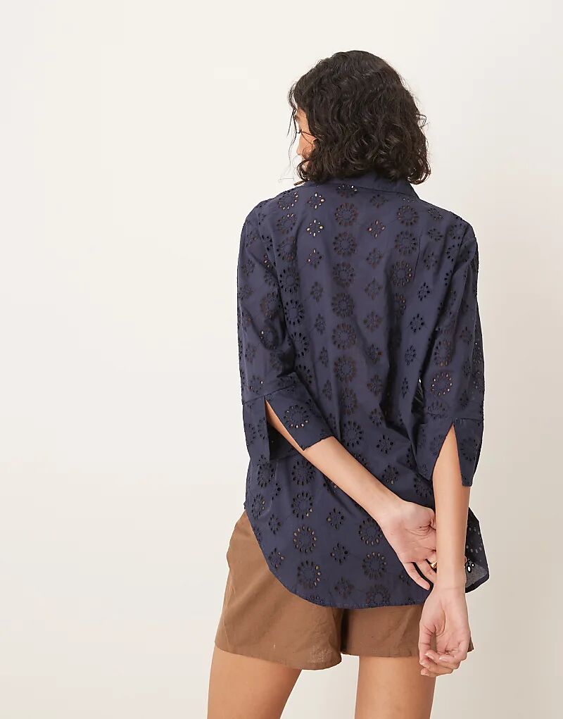 Рубашка JDY Pointelle с рукавами 3/4 темно-синего цвета